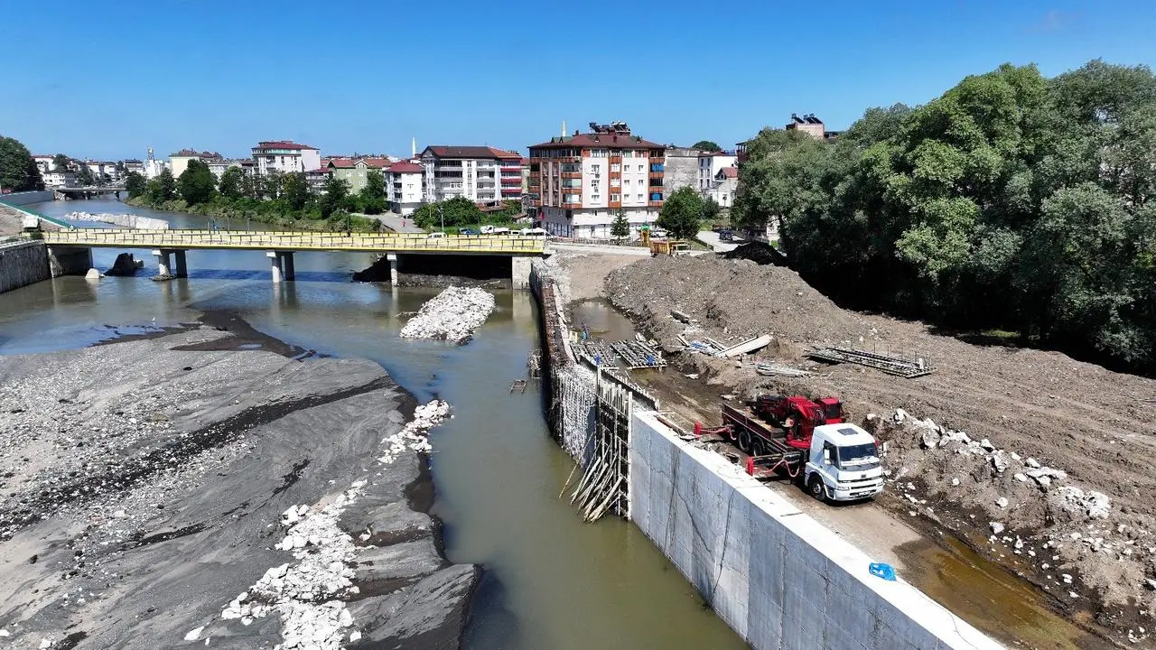 Terme Irmağı'nda kapsamlı ıslah çalışmaları devam ediyor. Köybucağı Mahallesi'ndeki taşkın öteleme havuzu projesinde sona yaklaşıldı.