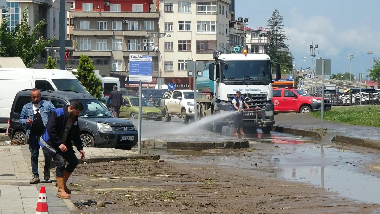 Trabzon'da bir saatte metrekareye 63 kilogram yağış düştü. Cadde ve sokaklar göle dönerken, iş yerlerini su bastı.