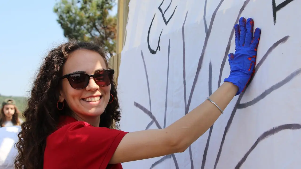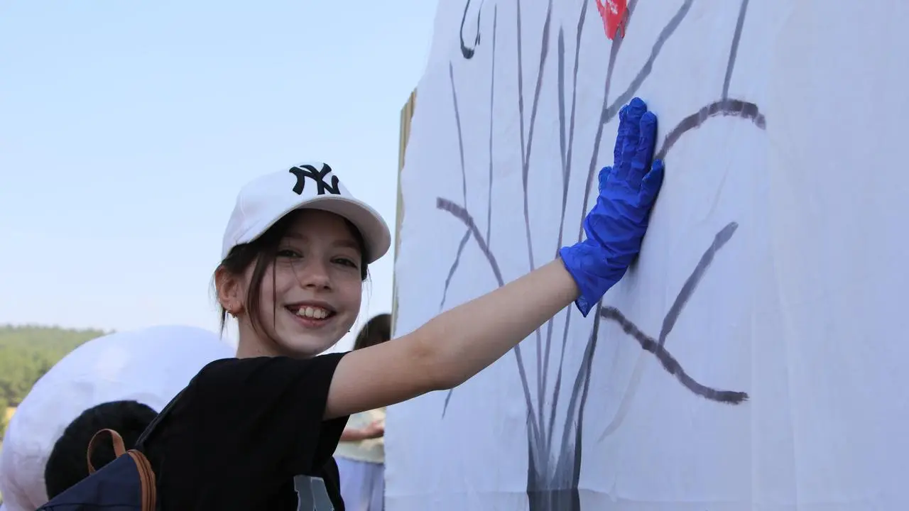 Çevre Haftası kapsamında üç farklı okuldan öğrenciler etkinlikte buluştu. Öğrenciler önce çevre haftası panosuna el izlerini bıraktı.