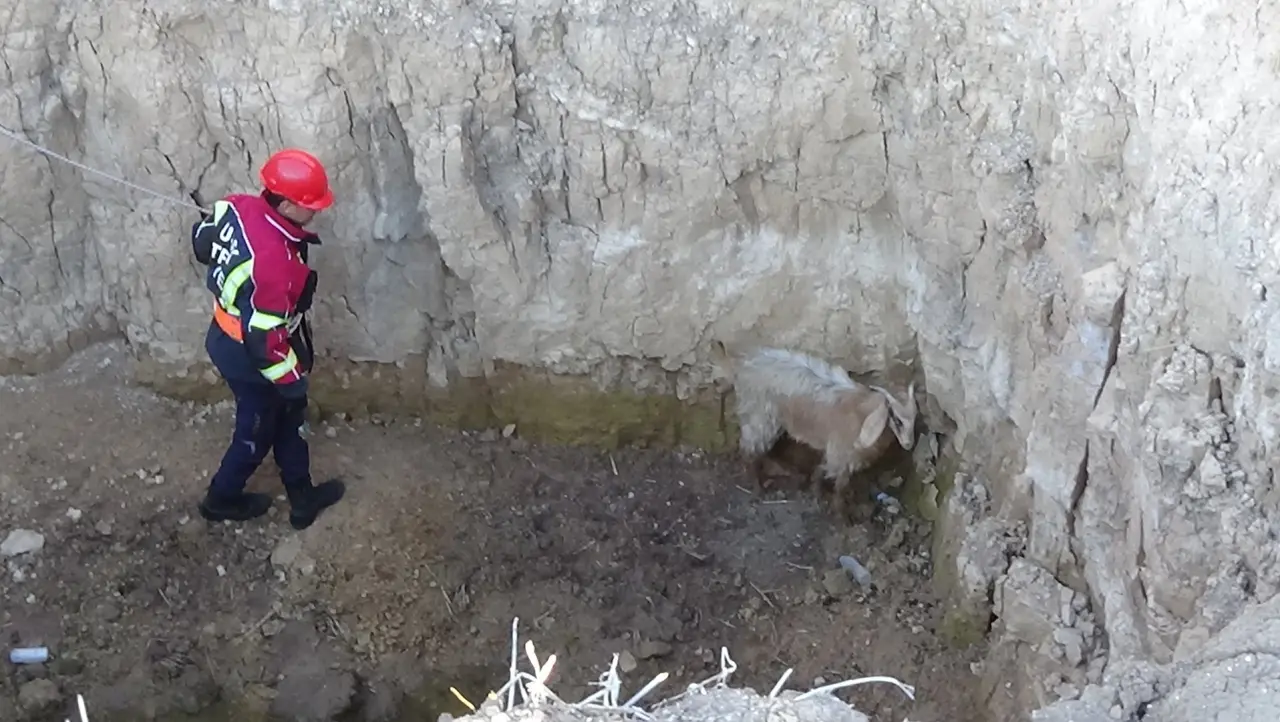 Olay yerine gelen itfaiye ekipleri, merdiven ve güvenlik ipi kullanarak çukura indi. Keçi, özenle yukarı çıkarılarak sahibine teslim edildi.