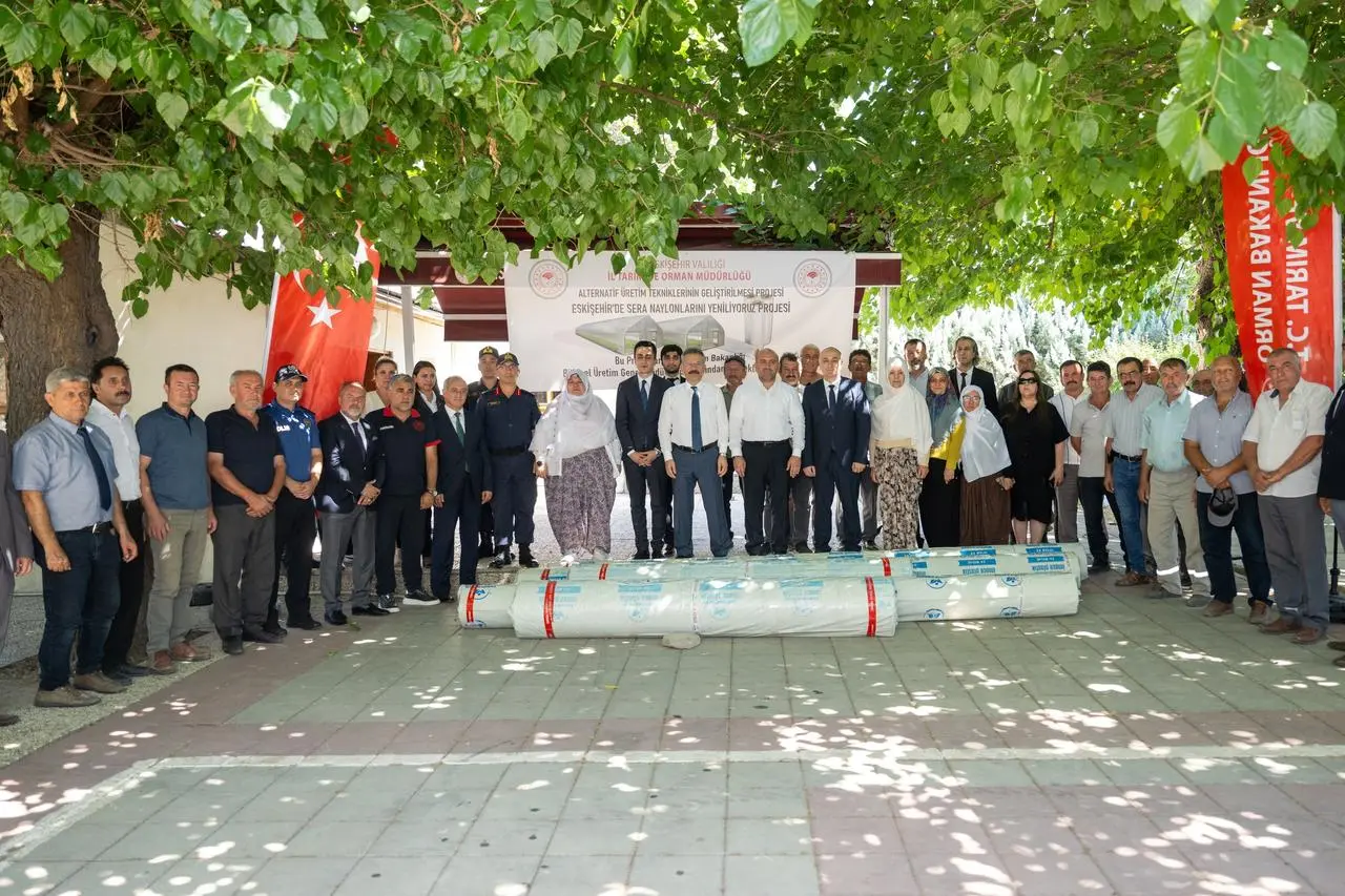 Vali Aksoy, 60 çiftçiye 65 dekar alanda kullanılmak üzere yeni sera naylonları teslim etti. Proje, alternatif üretim yöntemlerinin geliştirilmesini hedefliyor.