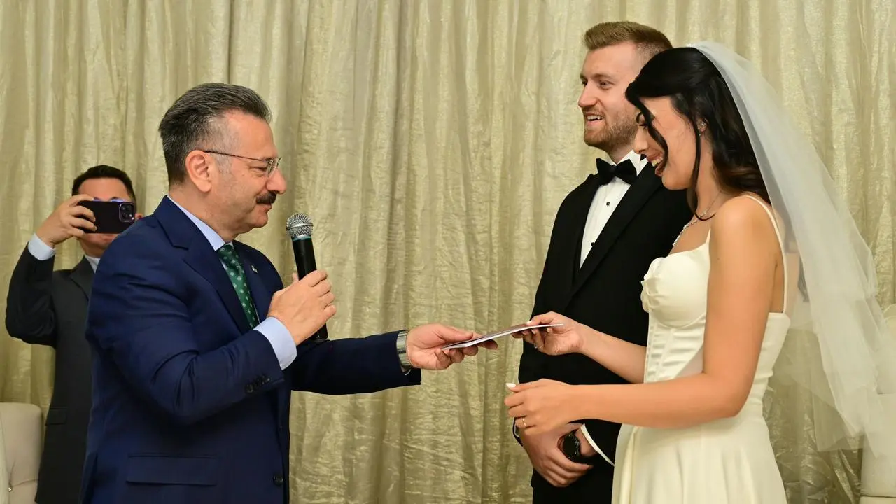 Eskişehir Valiliği makamında görev yapan Vali Hüseyin Aksoy, polis memurunun kızının nikah törenine katıldı. Genç çiftin mutlu gününde nikah şahitliğini üstlendi.