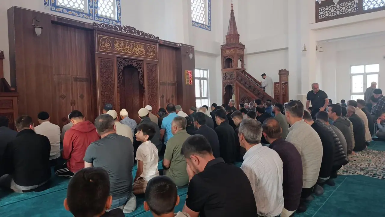 Vatandaşlar salavatlar eşliğinde birbirleriyle kucaklaştı. Cami avlusunda dualar edilip bayram tebrikleşmeleri yapıldı.