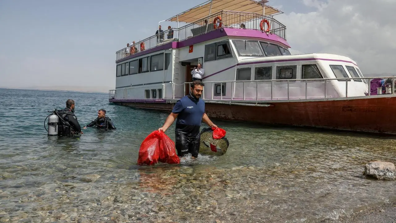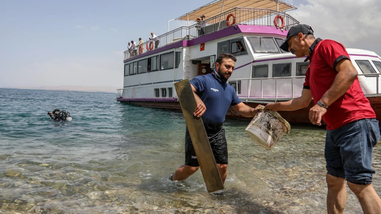 Van Büyükşehir Belediyesi ekipleri Akdamar Adası yakınlarında dip temizliği gerçekleştirdi. Su altı ekibi, gölün dibindeki atıkları çıkarmak için yoğun çaba sarf etti.