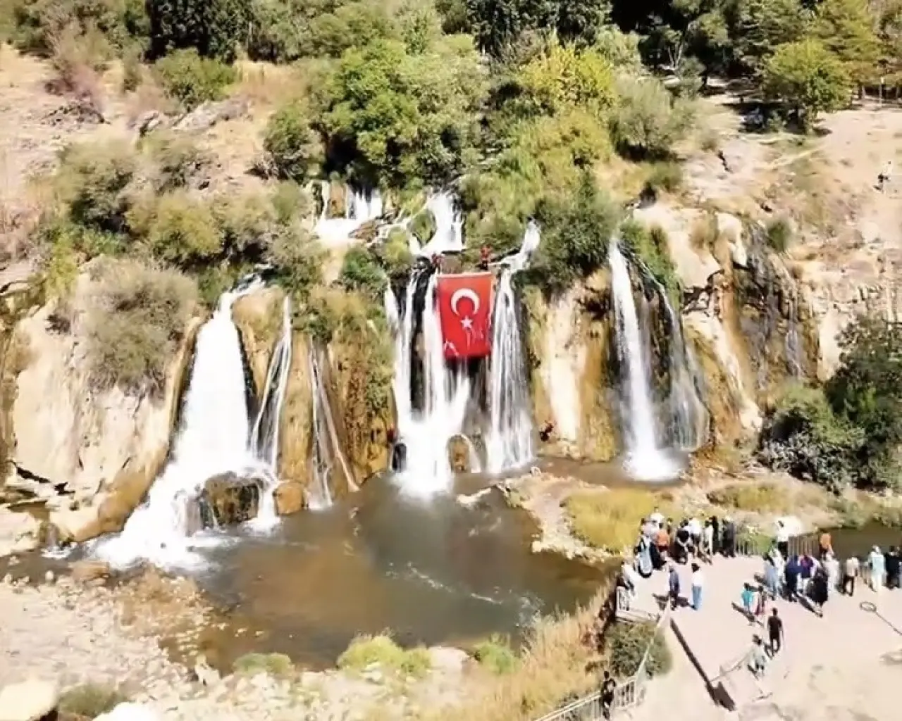 Van'da Jandarma Arama Kurtarma Timi, Muradiye Şelalesi'nde Türk bayrağını dalgalandırdı.