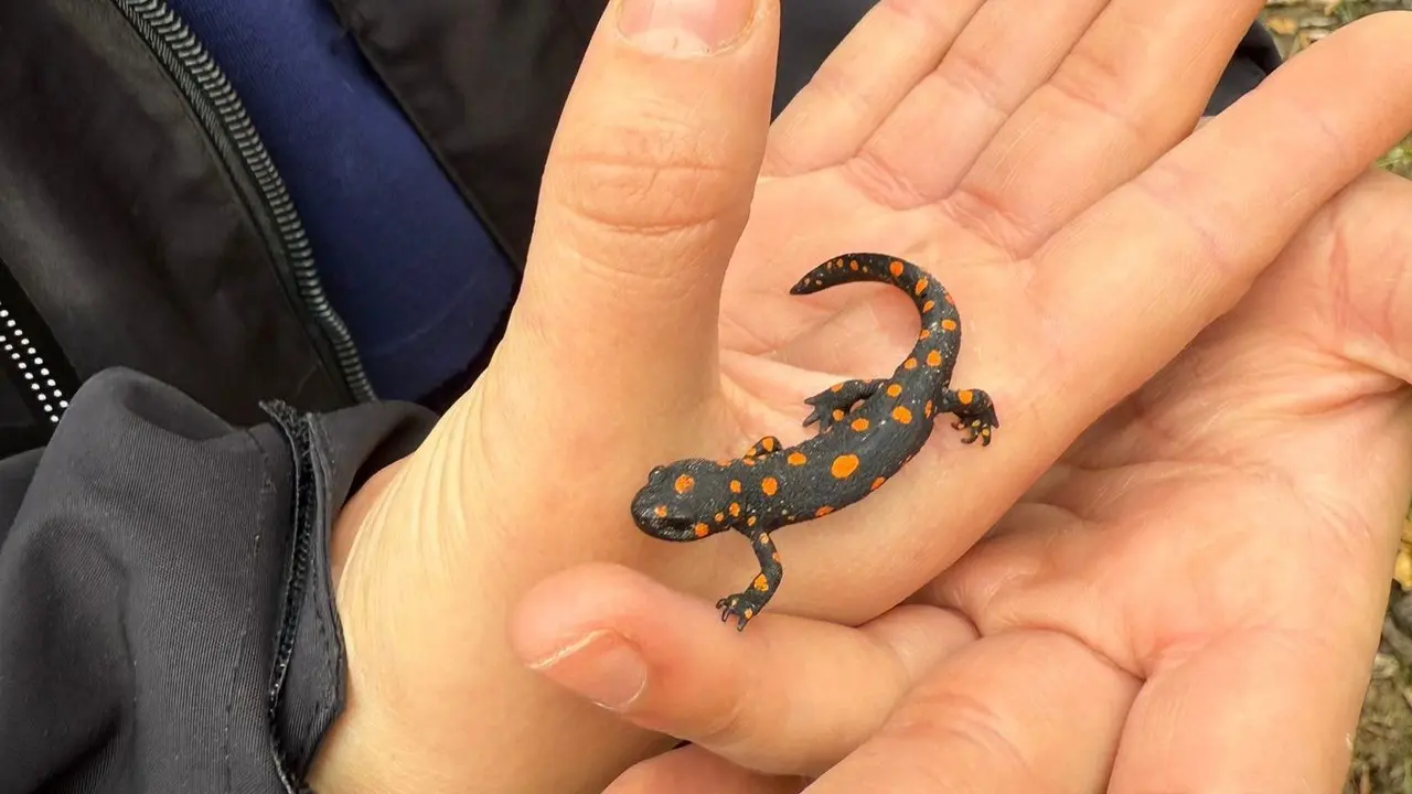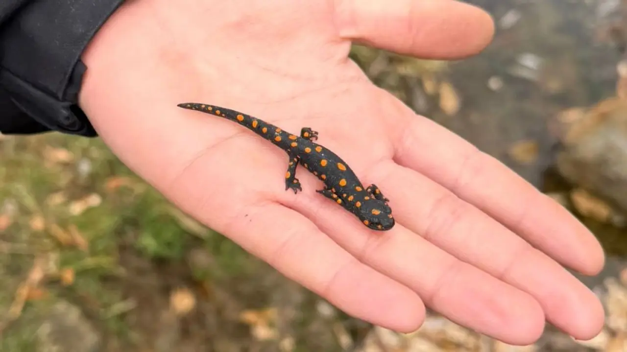 Van'ın Bahçesaray ilçesinde doğa yürüyüşü yapan bir grup, nadir görülen benekli semenderle karşılaştı.