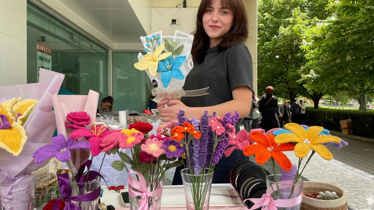 Eskişehir'de örgü ve çiçek tutkusunu bir araya getirerek örgüden buketler yapan Yeliz Elmas, solmayan çiçekleriyle büyük ilgi görüyor. El emeği ile hazırlanan renkli örgü çiçekler, özellikle özel günlerde tercih edilen kalıcı bir hediye alternatifi haline geldi. Yaklaşık bir yıldır örgü işiyle uğraşan Elmas, çiçeklere olan tutkusunu örgü sanatıyla birleştirerek farklı renk ve türlerde çiçekler üretiyor.
