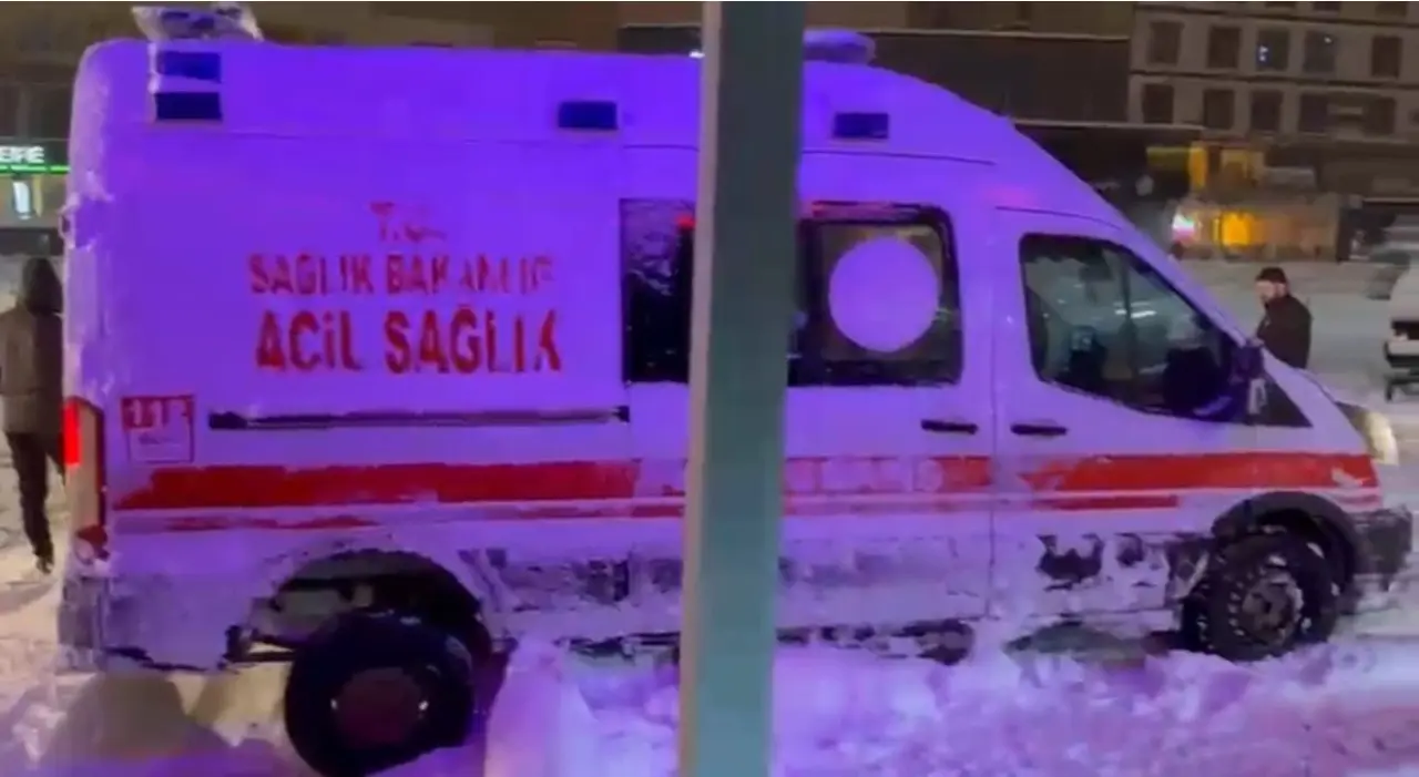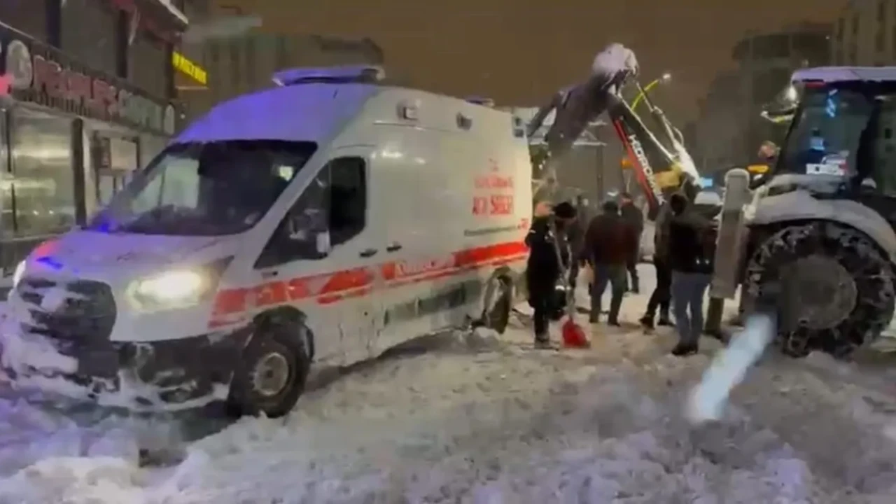 Kar kalınlığı yer yer 40 santimetreyi geçtiği için köy yolları kapandı. Ambulans kontrolünü kaybederek kara saplandı ve yardım istedi.