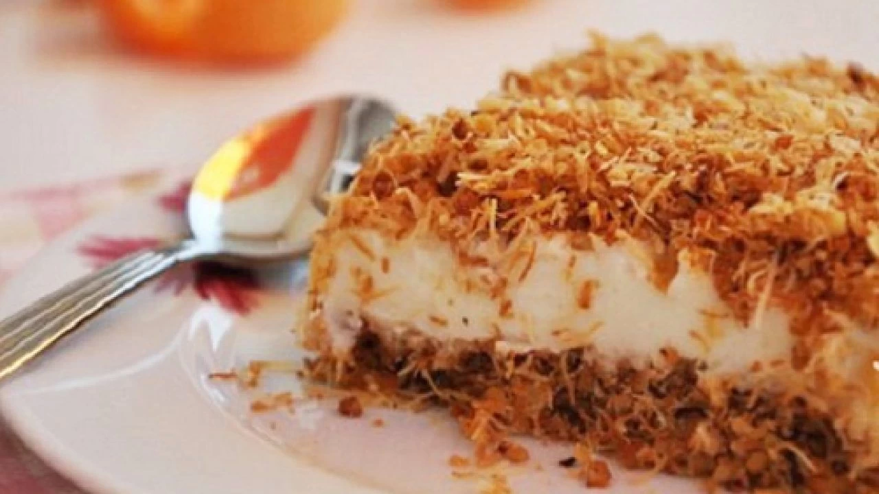 Üzerine muhallebiyi ekleyin ve tekrar kavrulmuş kadayıfla kaplayın.
