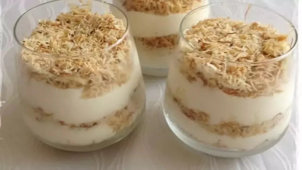 Kadayıflı muhallebi, sofralarda hafifliği ve lezzetiyle herkesin beğenisini kazanacak pratik bir tatlı tarifidir. Kavrulmuş tel kadayıfın çıtır çıtır tabanı ve üzerine dökülen yumuşacık muhallebiyle tadına doyulmaz bir lezzet sunar. İşte, kolayca hazırlayabileceğiniz kupta kadayıflı muhallebi tarifi.