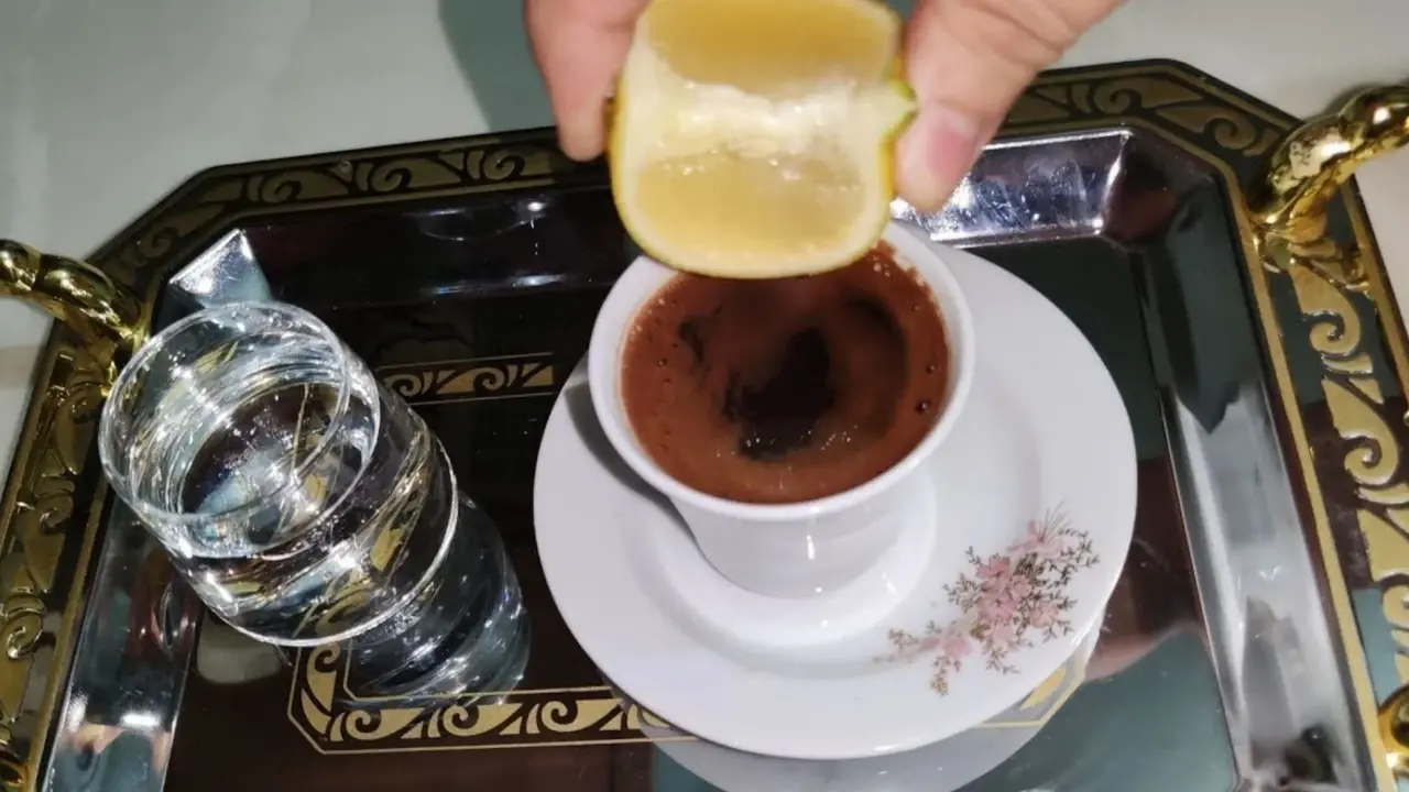 Malzemeler: 1 fincan su, 1 tepeleme çay kaşığı Türk kahvesi, 1 çay kaşığı toz şeker, limon. Yapılışı: Su, kahve ve şekeri cezvede karıştırıp pişirin. Fincana alınan kahvenin üzerine 8-10 damla limon suyu ekleyin.