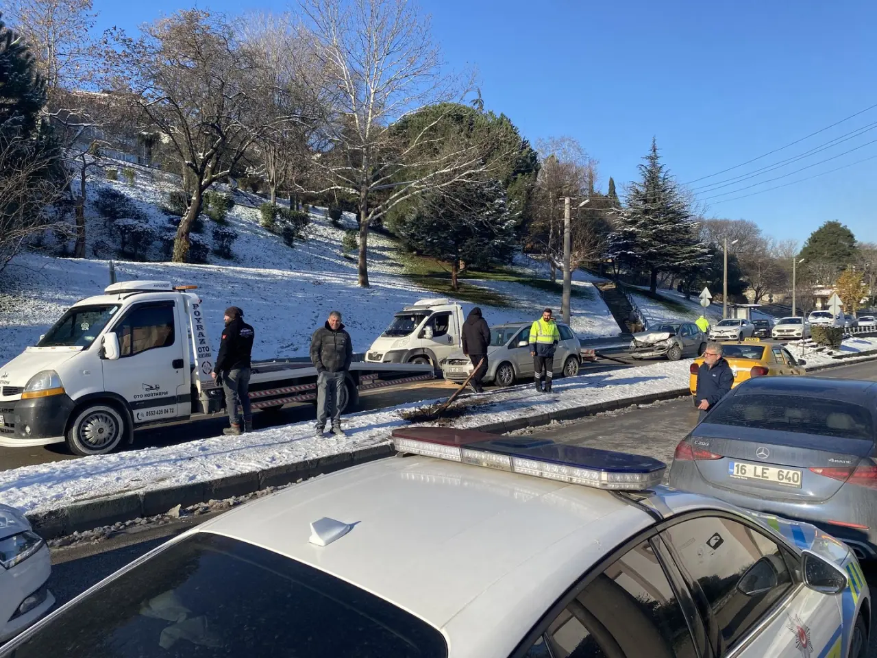 Osmangazi ilçesi Kükürtlü Caddesi'nde meydana gelen kazada M.E. idaresindeki araç buzlanma yüzünden savruldu. Öndeki 16 AD 283 plakalı araca çarpan araç, onu karşı şeride fırlattı.