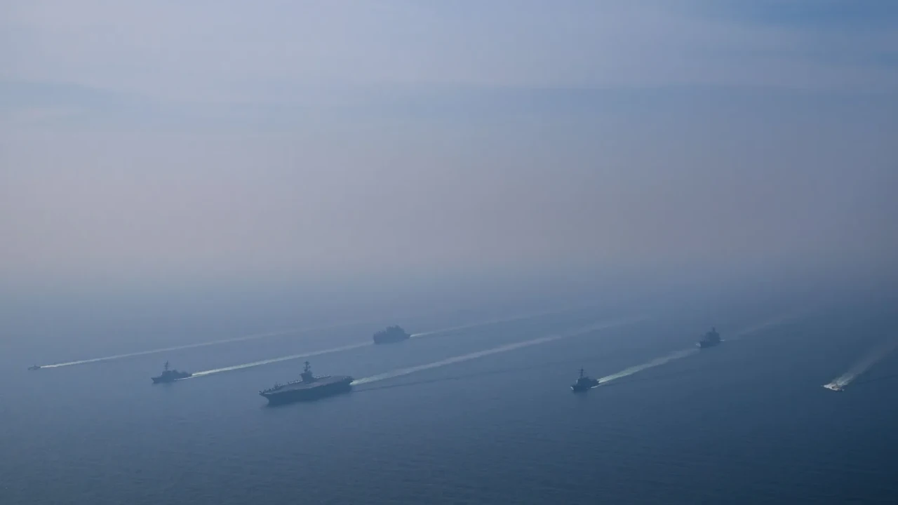 ABD ordusu, Umman Denizi’ndeki uçak gemisi grubunun fotoğraflarını sosyal medyada paylaştı. USS Abraham Lincoln, askeri ikmal ve Sahil Güvenlik gemileri eşliğinde bölgede seyir gerçekleştirdi.