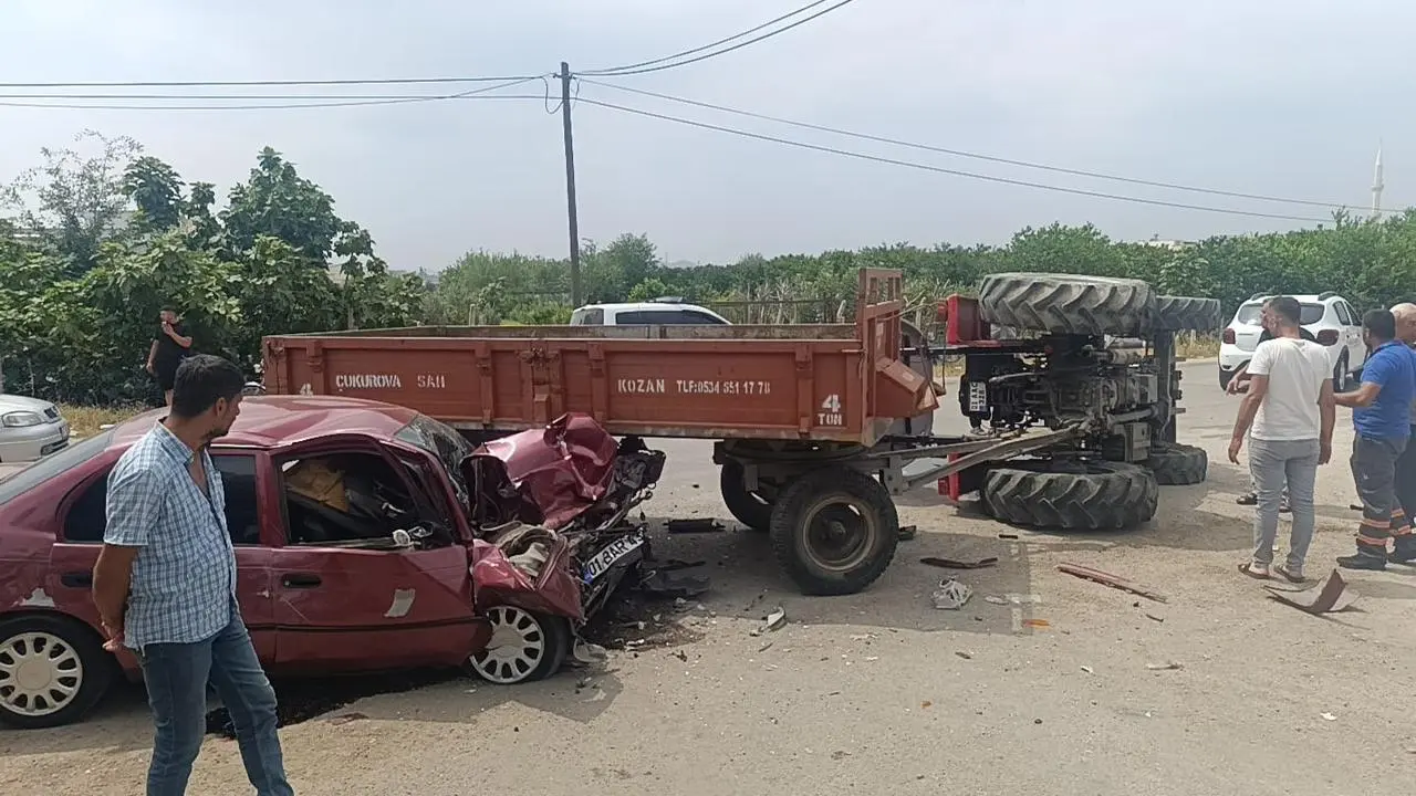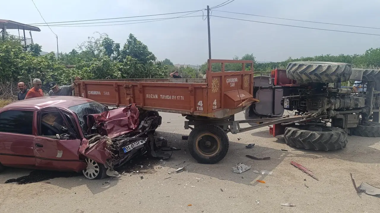 Adana'nın Kozan ilçesinde otomobil ile traktör çarpıştı, 2 kişi yaralandı.