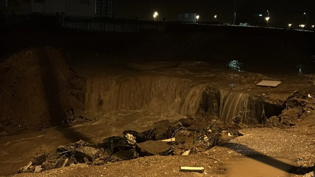 Yükselen su seviyesi nedeniyle bir motosikletli de yolda kaldı. Şiddetli yağışlar bir sitenin istinat duvarının yıkılmasına neden oldu.