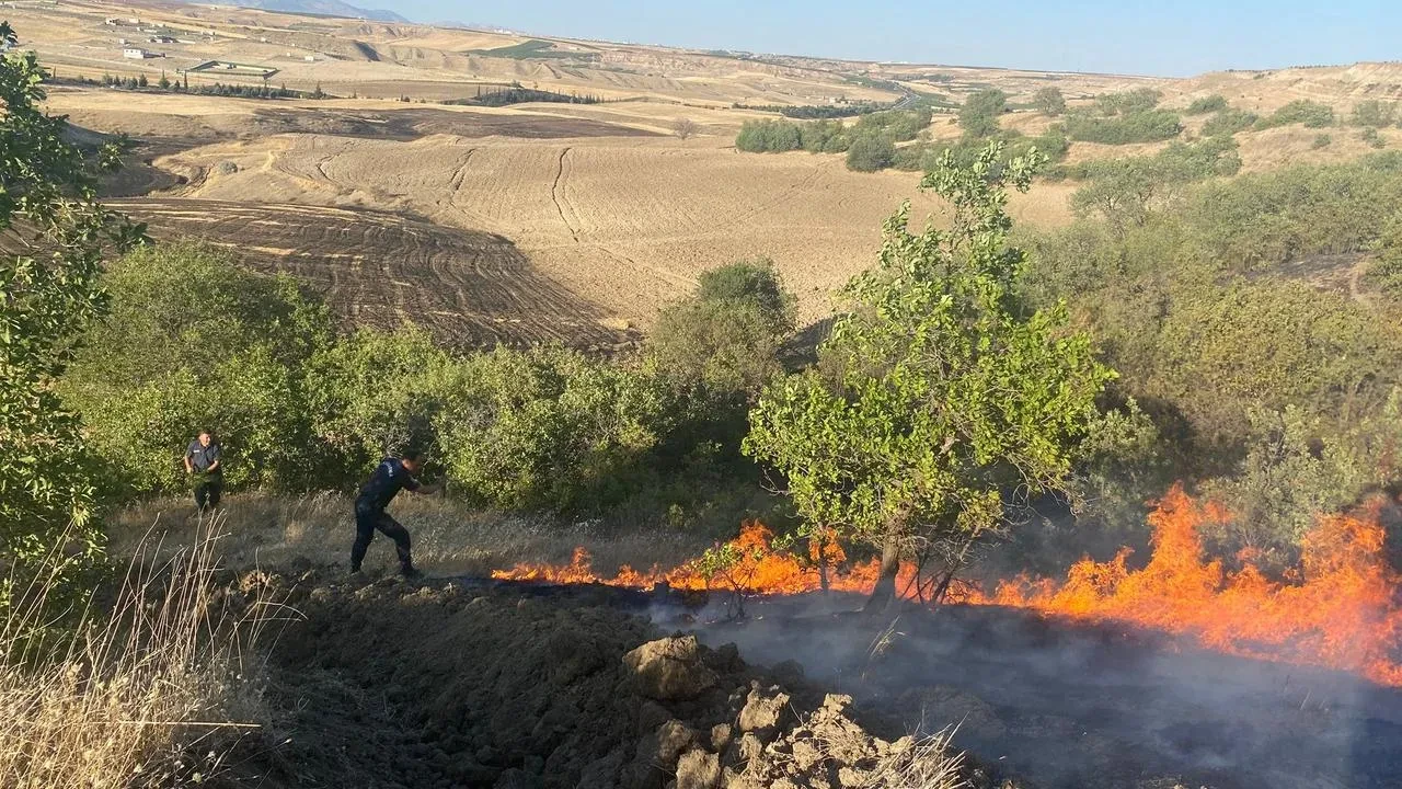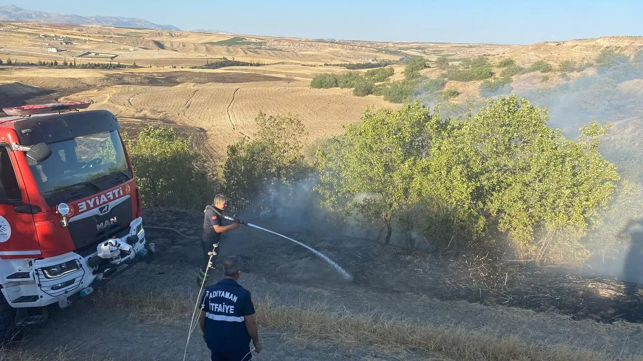 Adıyaman'da çıkan anız yangını hızla yayılarak çevredeki meyve bahçelerine sıçradı ve büyük korku yarattı.
