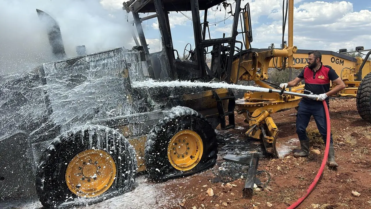 Yangın, çevrede bulunan bir iş makinesine sıçradı. Alev alan makine, kısa sürede kullanılamaz hale geldi.