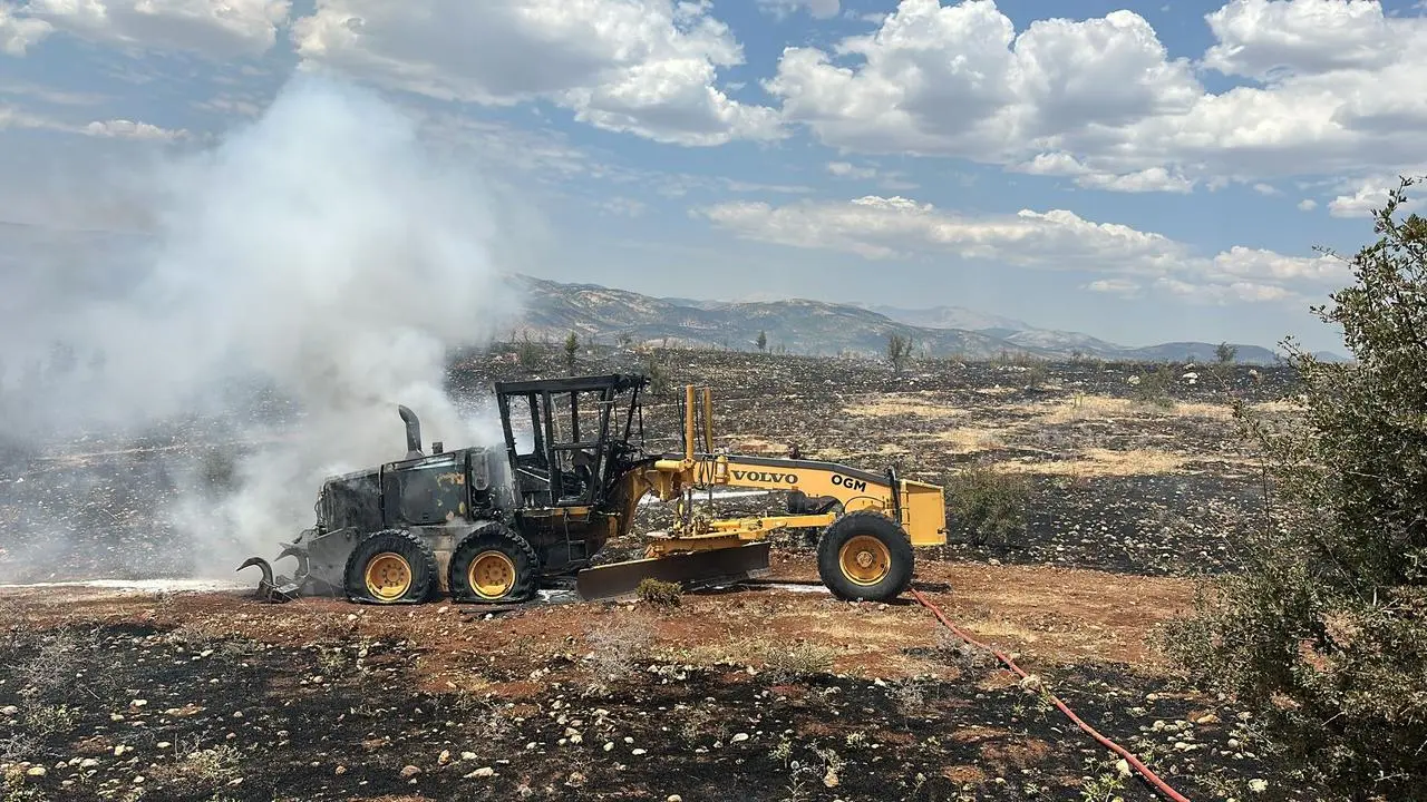 Adıyaman’ın Gölbaşı ilçesinde çıkan orman yangını, iş makinesine sıçrayarak hurdaya dönmesine neden oldu.