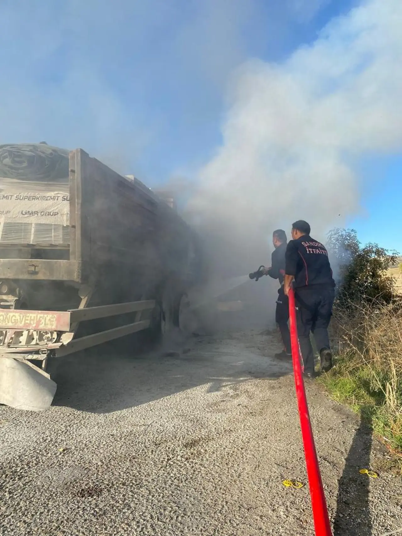 Sandıklı ilçesi çıkışında meydana gelen olayda, tırın lastiklerinden aniden dumanlar yükselmeye başladı. Sürücü durumu fark edip aracı kenara çekerek itfaiyeye haber verdi.