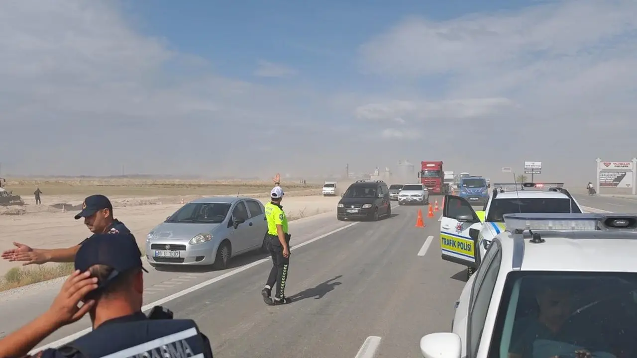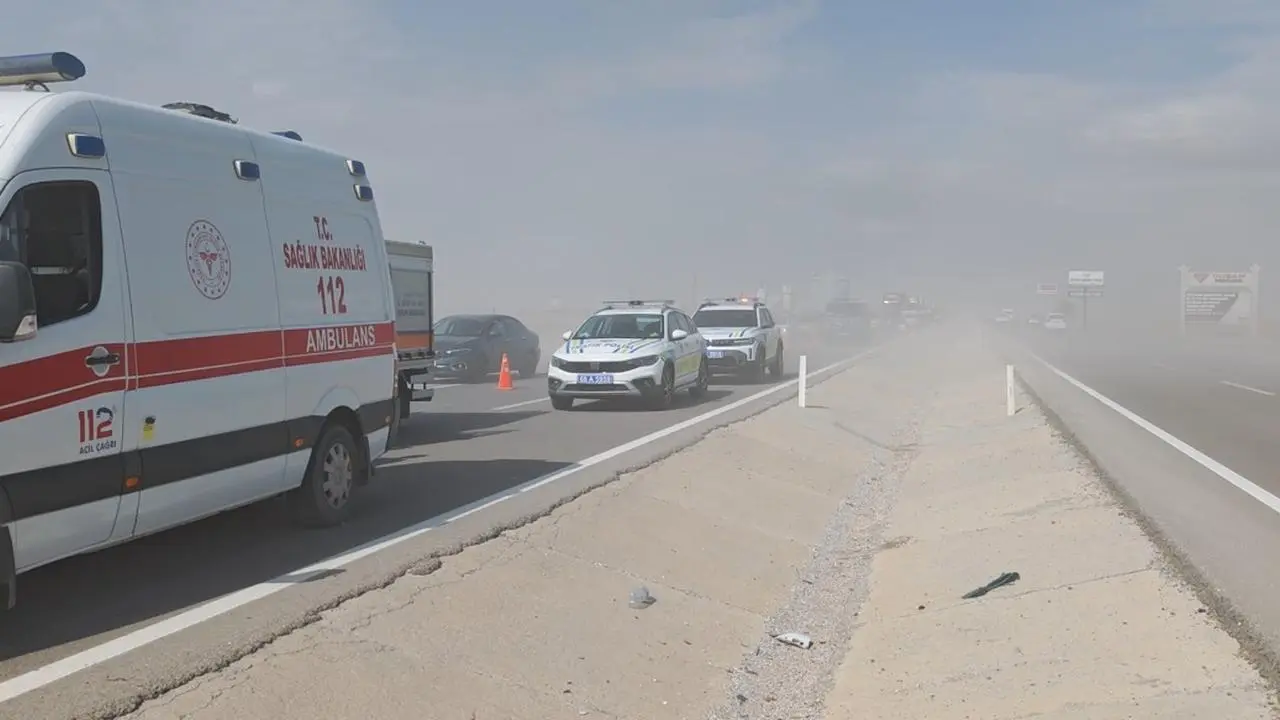 Aksaray-Konya karayolunun 35. kilometresinde şiddetli rüzgar kum fırtınasına neden oldu. Görüş mesafesinin düşmesi sonucu 5 araç birbirine çarptı.
