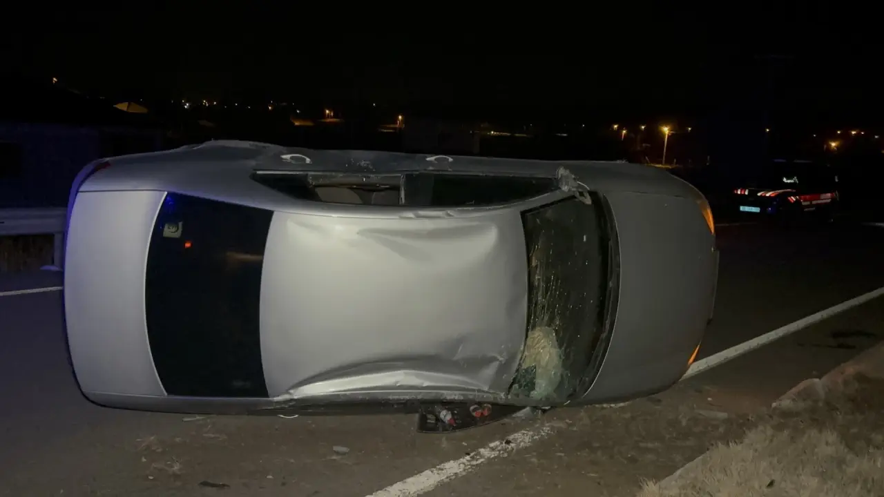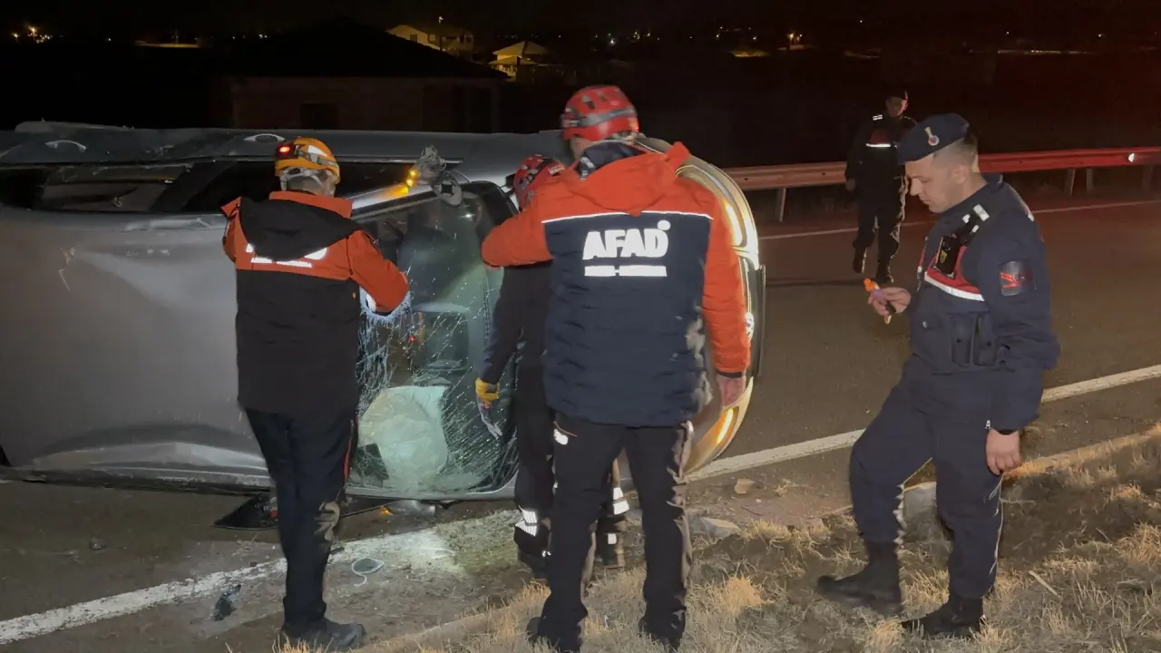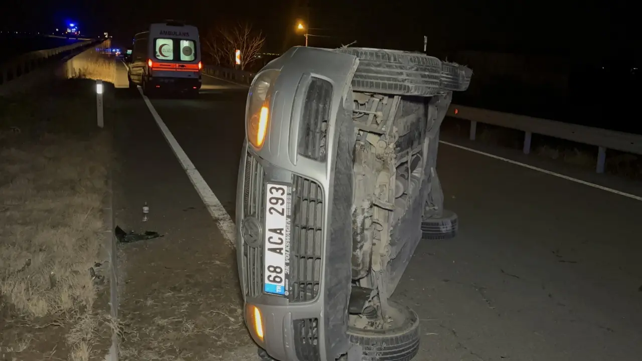 Aksaray'da direksiyon hakimiyetini kaybeden sürücünün aracı devrildi, 2 kişi yaralandı.