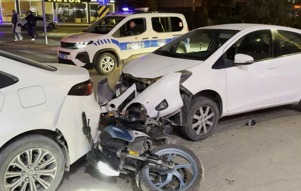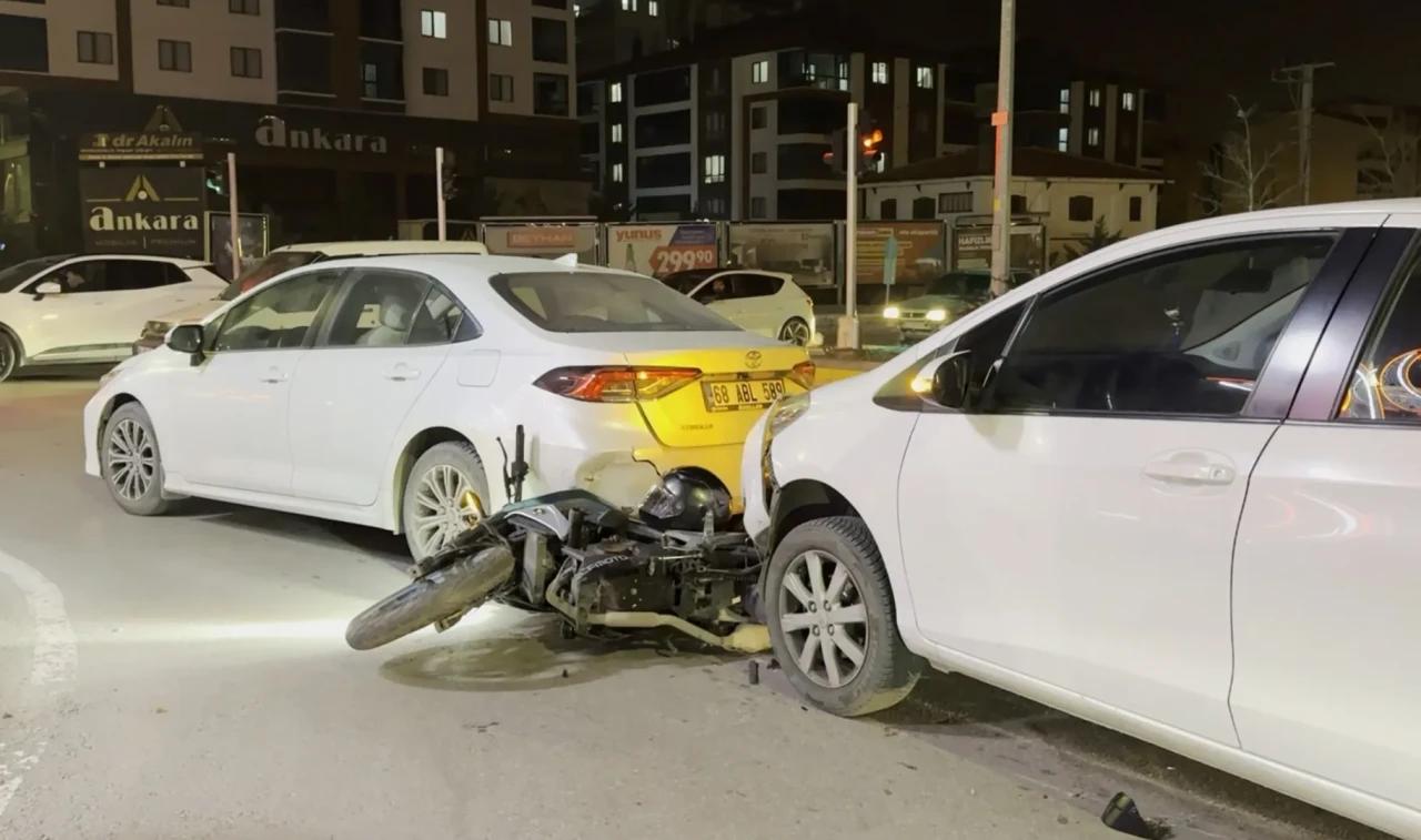 Aksaray'da üç otomobil ve bir motosikletin karıştığı zincirleme kazada motosiklet sürücüsü yaralandı.