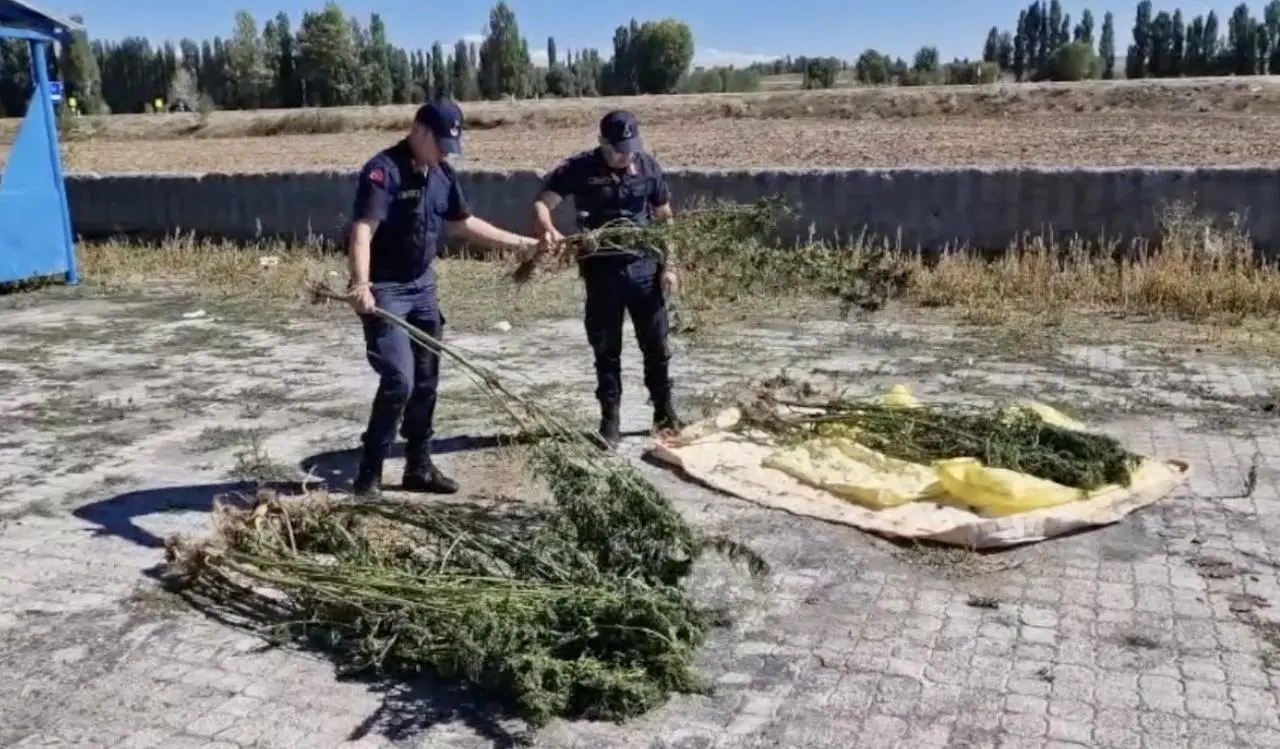 Çorum'un Alaca ilçesinde jandarma ekiplerince ele geçirilen 21 kök kenevir bitkisi kontrollü şekilde yakılarak imha edildi.