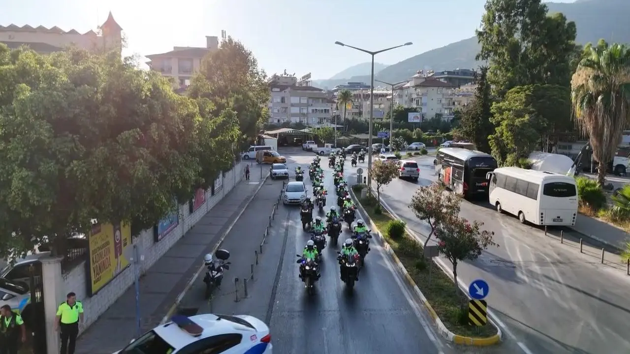 Alanya İlçe Emniyet Müdürlüğü'ne bağlı 9 motorize Şahin timi ve 7 trafik ekibi görev aldı. Antalya Emniyet Müdürlüğü'nden 28 motorize unsur da katıldı.