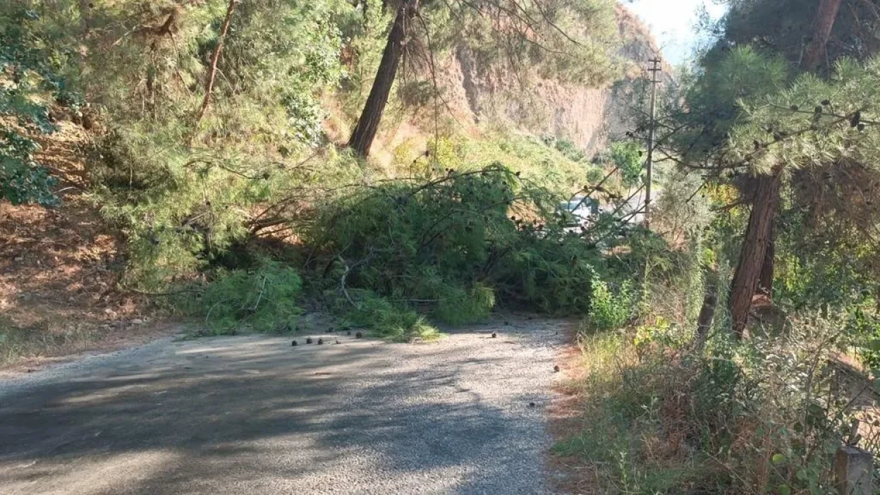 Olay, dün akşam Kavaklıdere ve Horzumkeserler mahalleleri arasında gerçekleşti. Fırtınanın etkisiyle devrilen ağaç yolu tamamen kapattı.