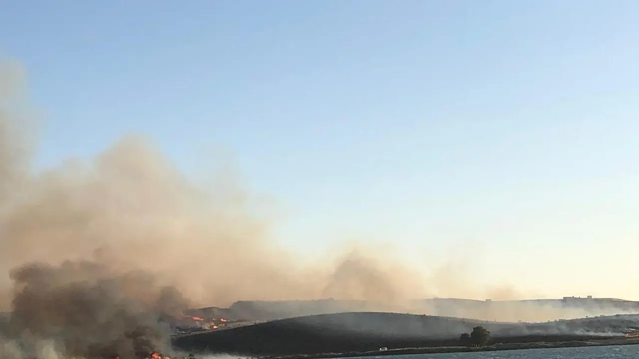 Hacı Ömerli ile Çaltılıdere arasındaki Mersinlik mevkiinde çıkan yangın hızla yayıldı. Kuru otların tutuşmasıyla alevler geniş alana sıçradı.