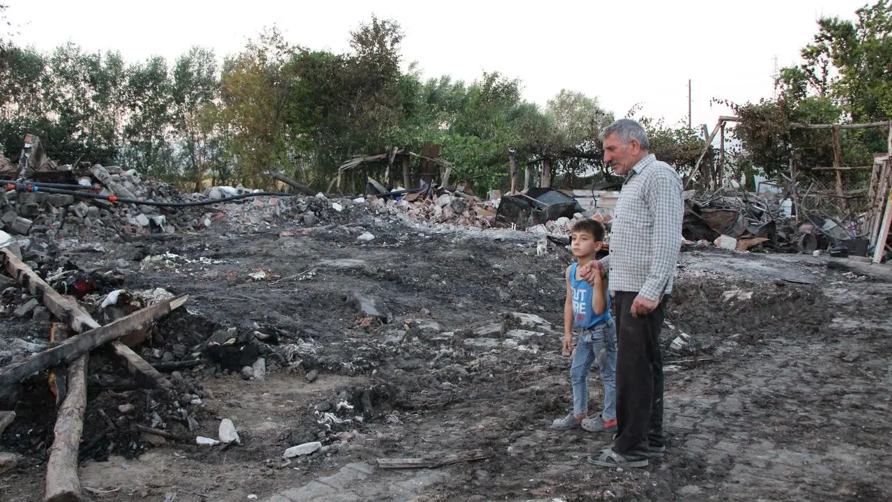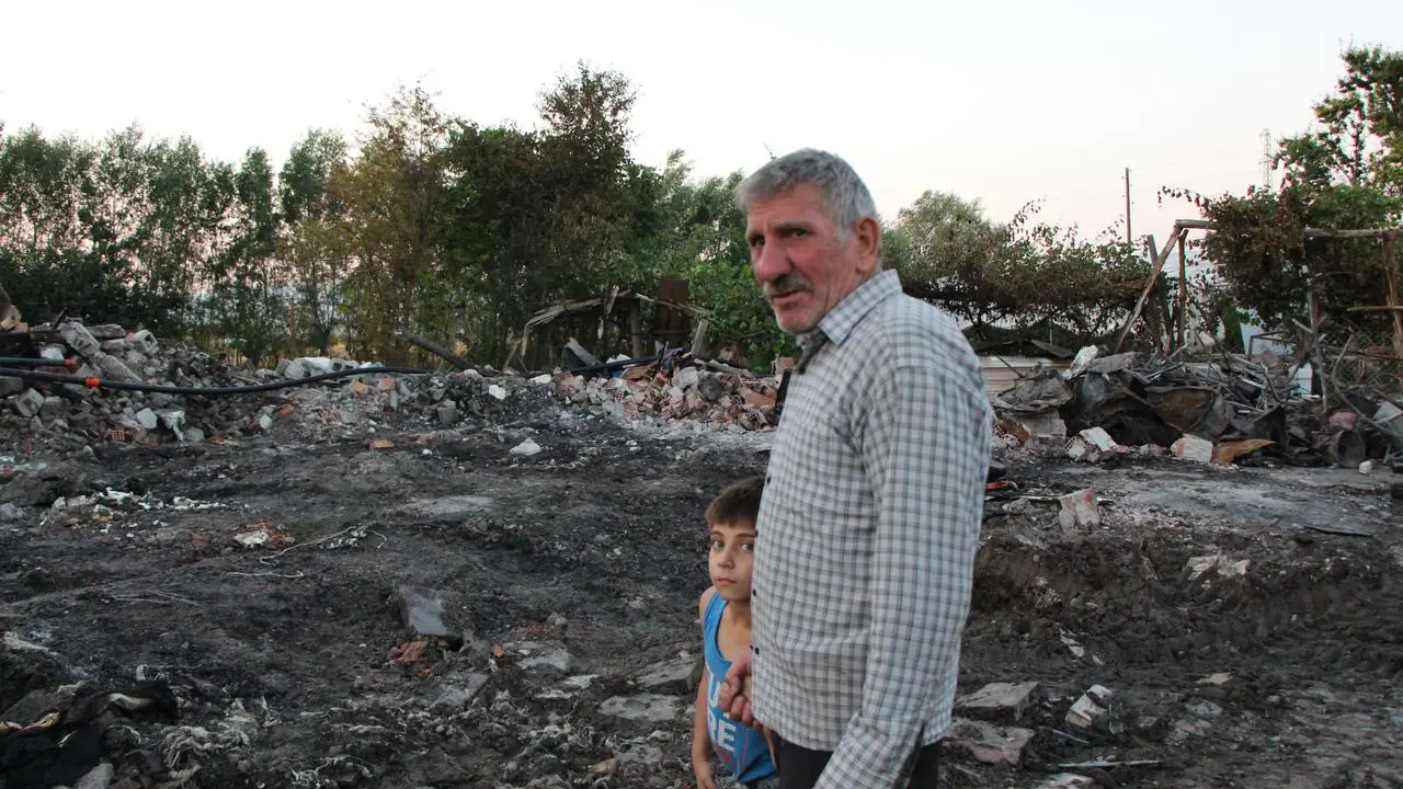 Amasya'da çıkan yangında evleri, traktörleri ve otomobilleri yanan Aktaş ailesi, 4 torunuyla yuvasız kaldı.