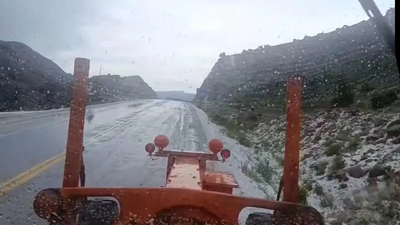 Karla mücadele ekipleri bölgeye hızla müdahale etti. Bir saatlik çalışma sonucunda yoldaki dolu birikintileri temizlendi.