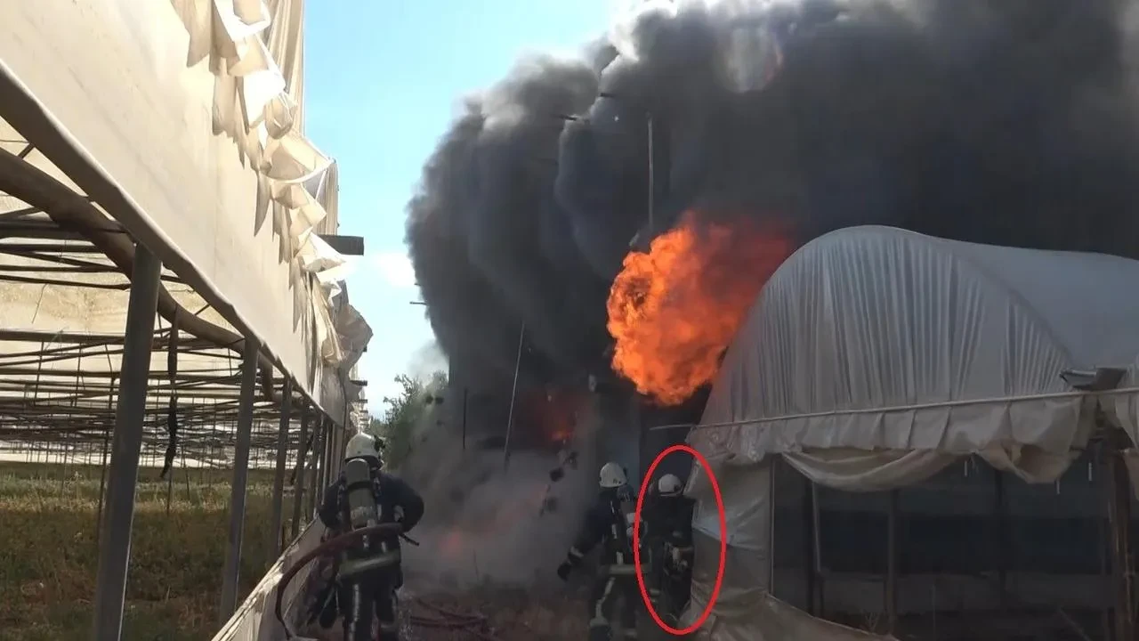 Antalya'nın Kepez ilçesinde bulunan bir mobilya atölyesinde çıkan yangında itfaiye erleri, çöken duvardan son anda kurtuldu.