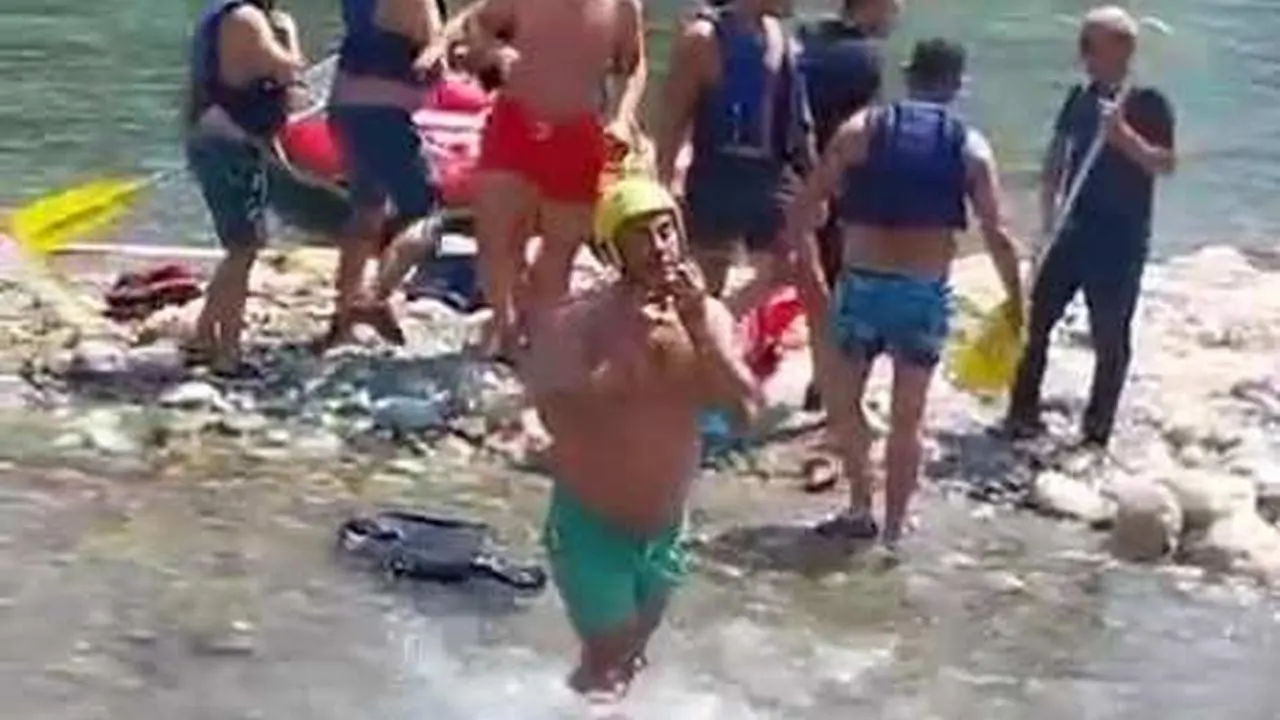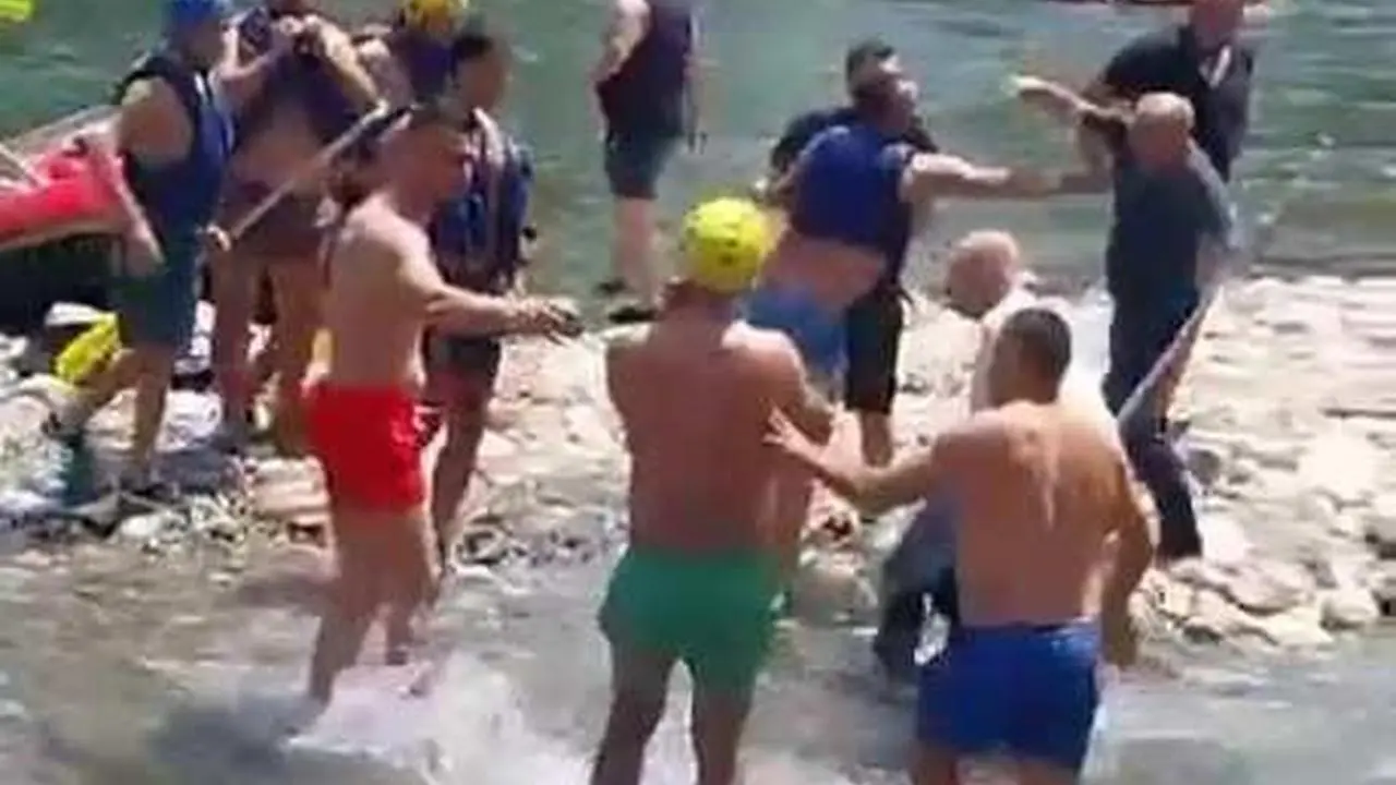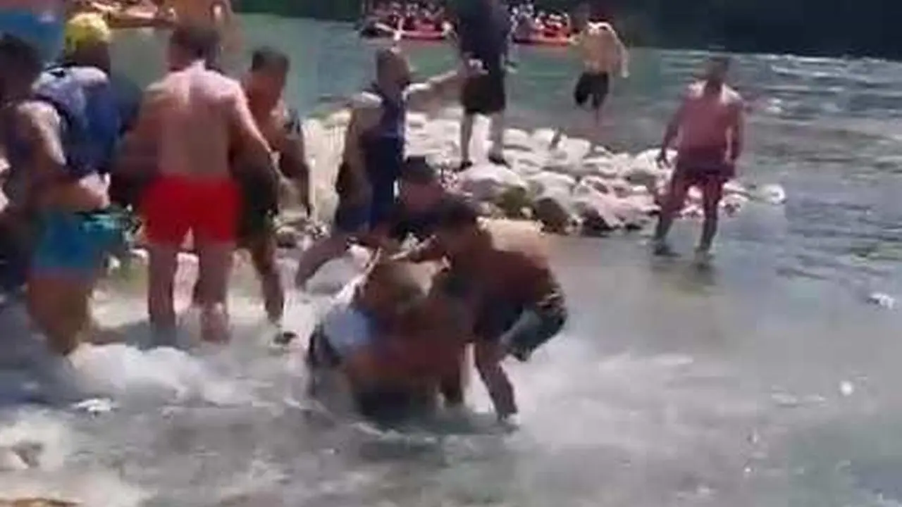 Gruplar arasında su içinde yumruklaşma ve tekmeleşme başlarken, rafting kürekleri de saldırı aracı olarak kullanıldı. Çevredekilerin müdahalesine rağmen kavga bir süre devam etti.