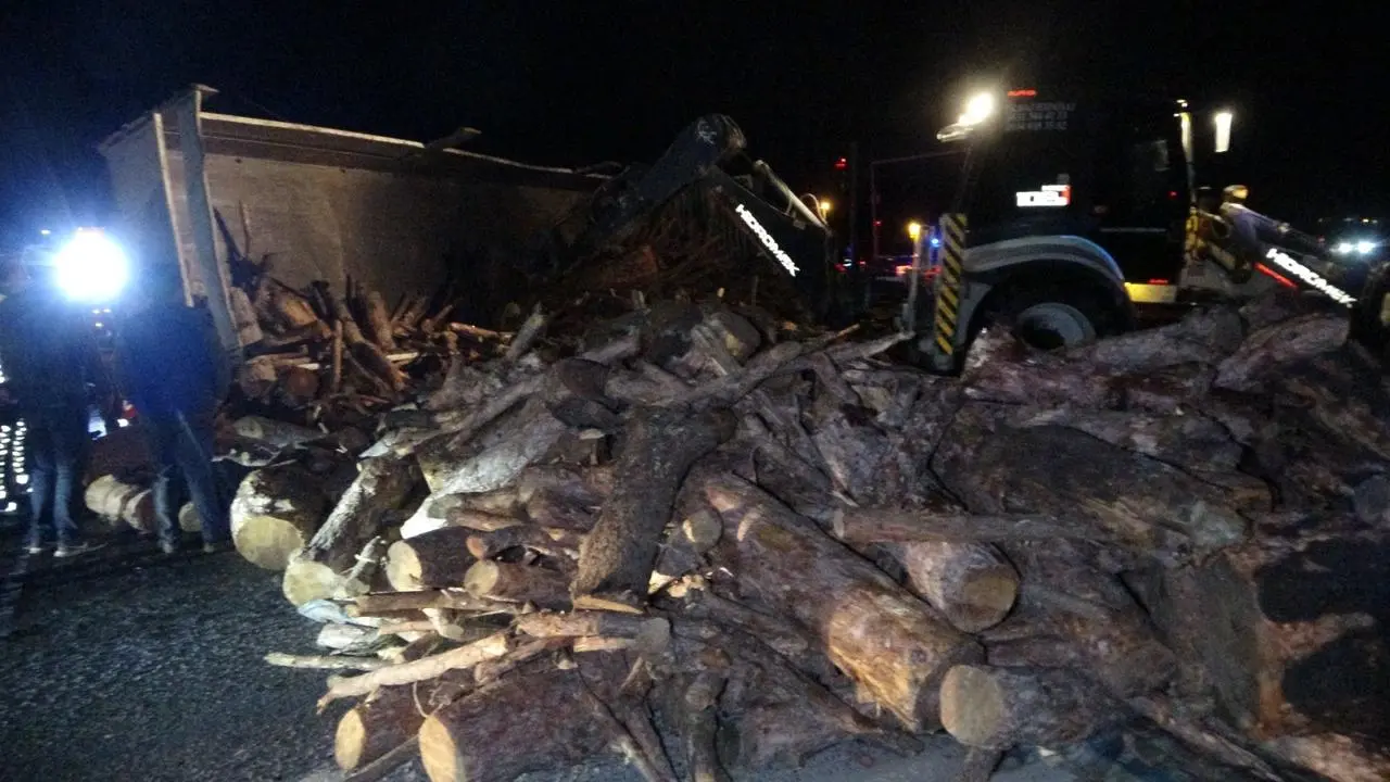 Yoldan kaldırılan odunlar ve kamyonun ardından trafik normale döndü. Temizlik çalışmaları tamamlanınca ulaşım tek şeritten sağlandı.