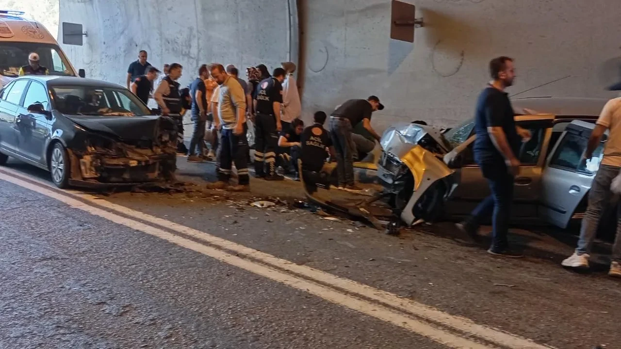 Zeytinlik köyü Kapan-1 Tüneli mevkiinde iki araç çarpıştı. Emrullah Ü. ve Hakan Ö.'nün kullandığı araçlar kafa kafaya geldi.