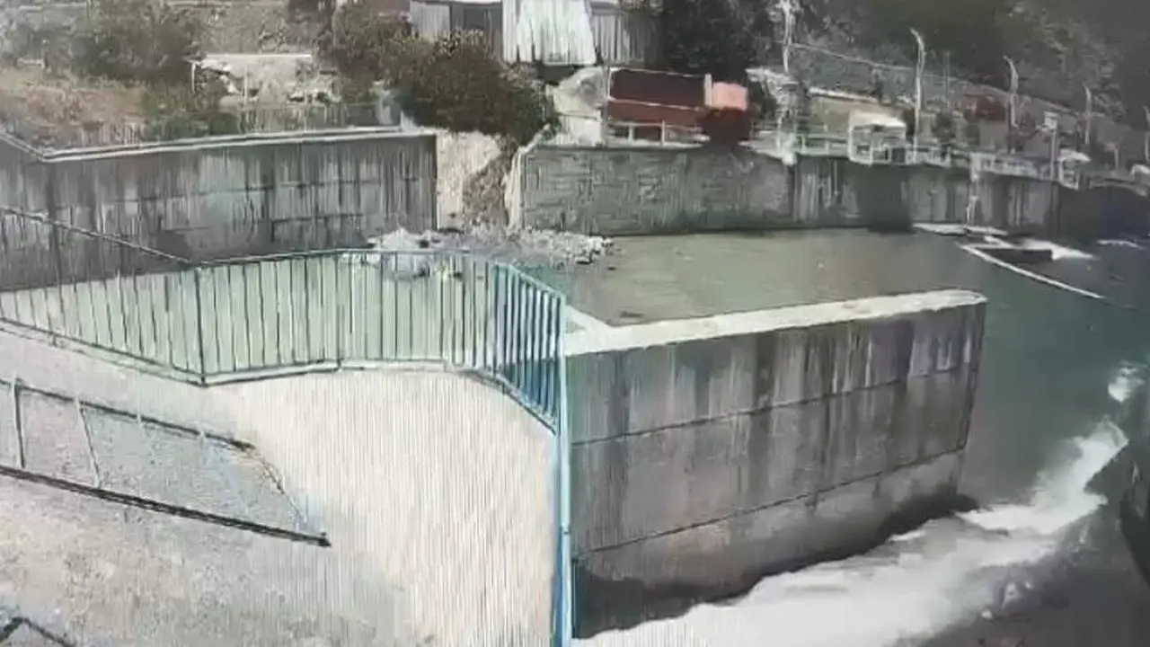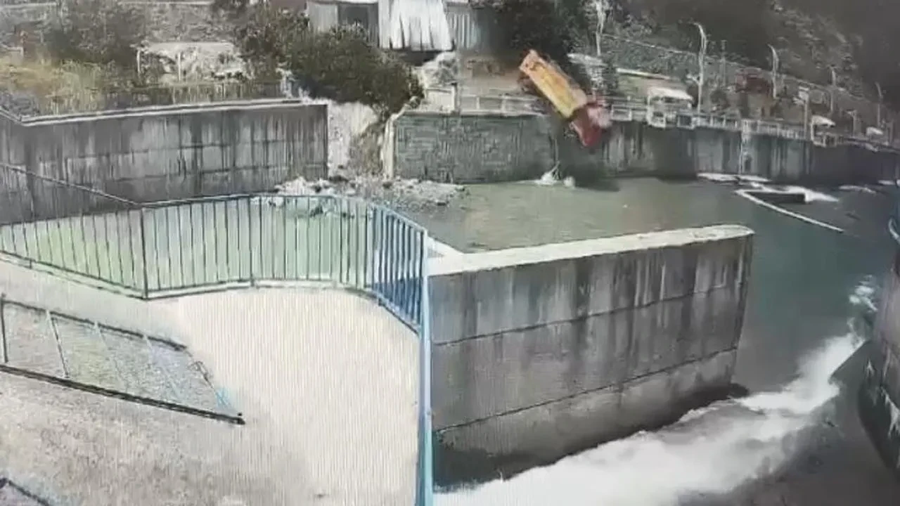 Artvin'in Murgul ilçesinde kontrolden çıkan bir kamyon dereye uçarak kazaya neden oldu, güvenlik kameralarına yansıdı.