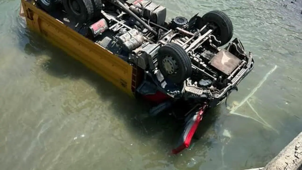 Kamyon araç yıkama tesisine park etmeye çalışan sürücü direksiyon hakimiyetini kaybetti. Araç tesisin arka kısmında bulunan dereye yuvarlandı.