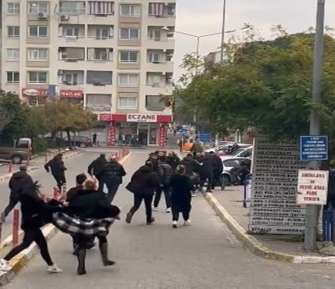 Hastane önünde yaşanan arbede sırasında polis, yaralıyı hızla uzaklaştırmaya çalıştı. Kalabalık, polis aracının önünü keserek saldırı girişiminde bulundu.