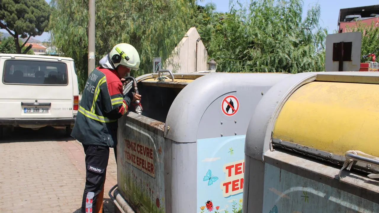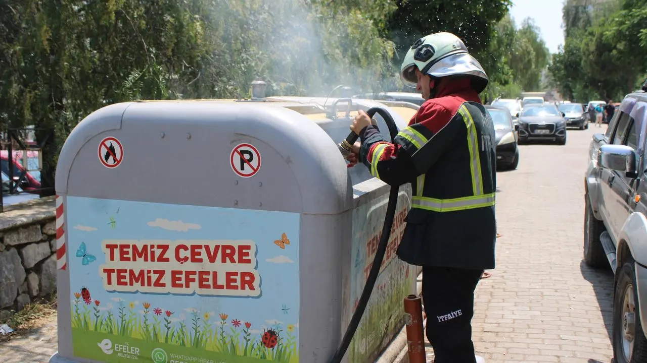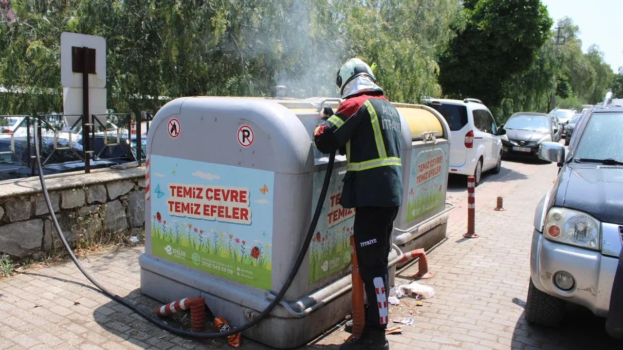 Aydın'ın Efeler ilçesindeki bir çöp konteynerinde çıkan yangın, itfaiye ekiplerinin hızlı müdahalesiyle söndürüldü.