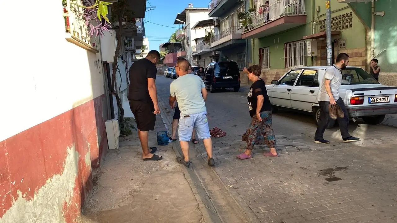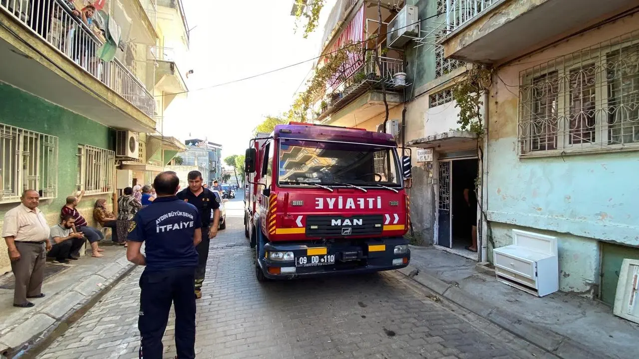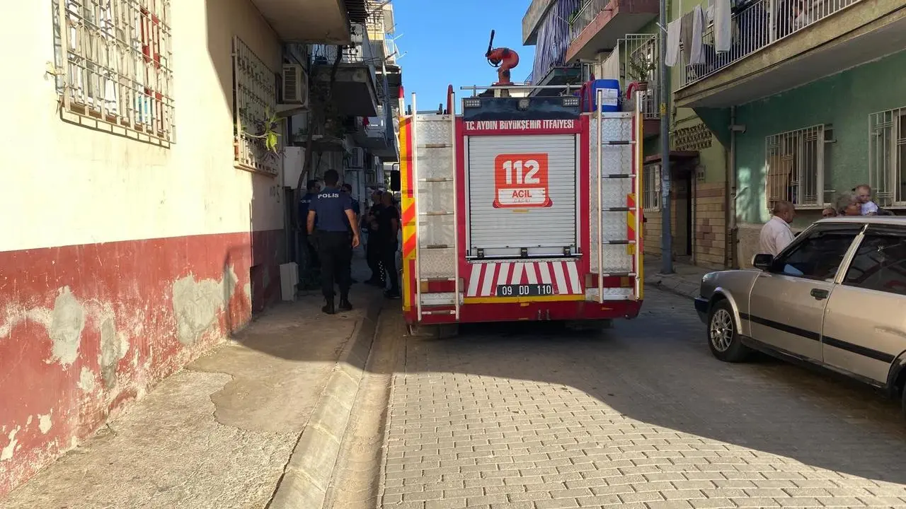 Efeler ilçesinde bir apartmanda mutfak tüpü alev aldı. Ev sahipleri tüpü apartman boşluğuna attı.