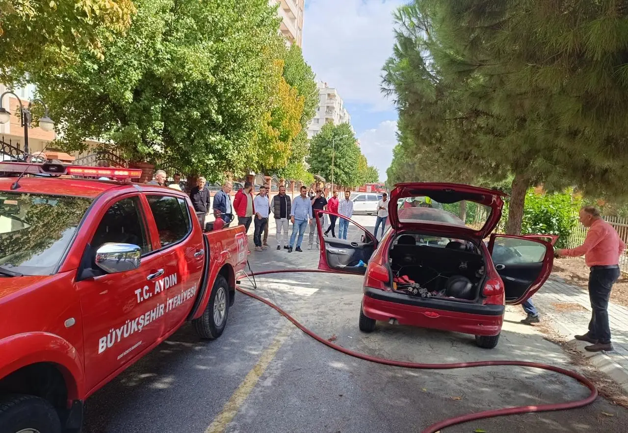 Aydın'ın Efeler ilçesinde seyir halindeki otomobilin motor bölümünde çıkan yangın itfaiye ekiplerince söndürüldü.
