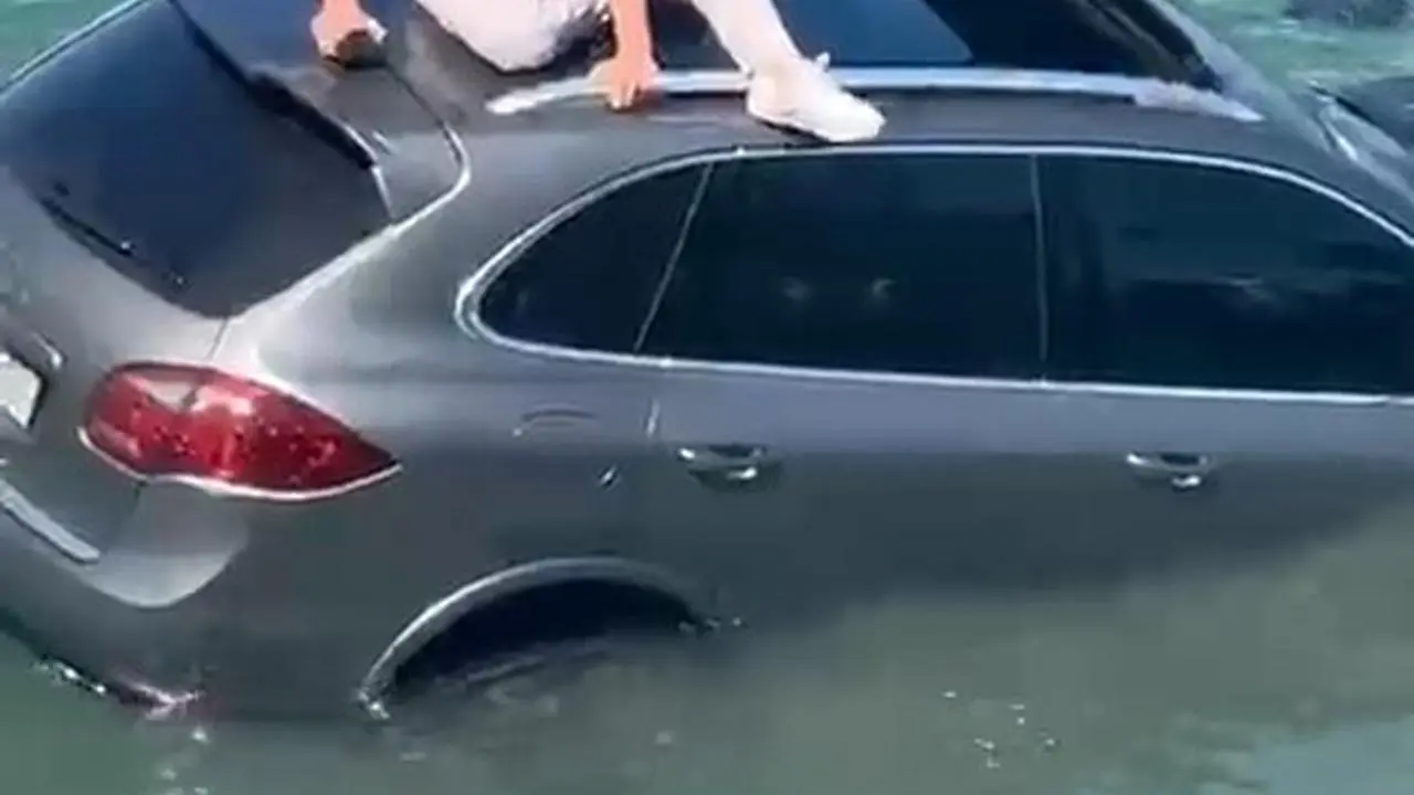 Balıkesir’in Ayvalık ilçesinde sahil yolunda bir otomobil kontrolden çıkarak denize uçtu. Sürücü, batmakta olan aracın üzerinde dakikalarca bekledi.