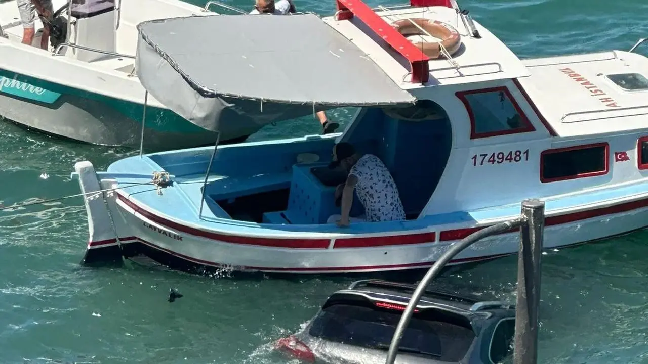 Batmakta olan aracın sunroofundan çıkmayı başaran sürücü, dakikalarca üzerinde bekledi. Balıkçı teknelerinin müdahalesiyle sürücü kurtarıldı.