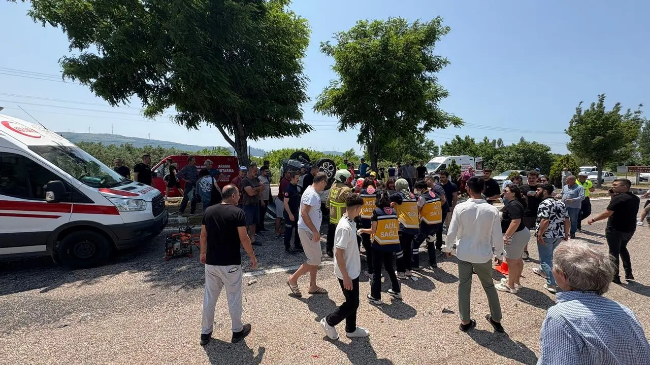 Bandırma'dan Erdek yönüne giden otomobil kontrolden çıkarak iki araca çarptı. Çarpmanın etkisiyle araç ters dönerek sürücü Sabahattin A. içeride sıkıştı.
