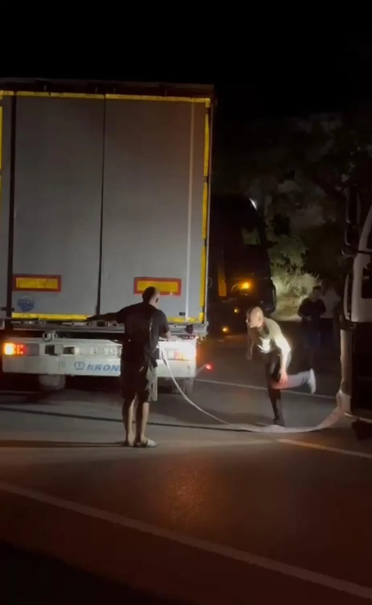 Yaklaşık 40 dakika boyunca kapalı kalan yolda uzun araç kuyrukları oluştu. Ağır tonajlı kamyonların yardımıyla dorsenin yol kenarına çekilmesiyle trafik tek şeritten sağlandı.