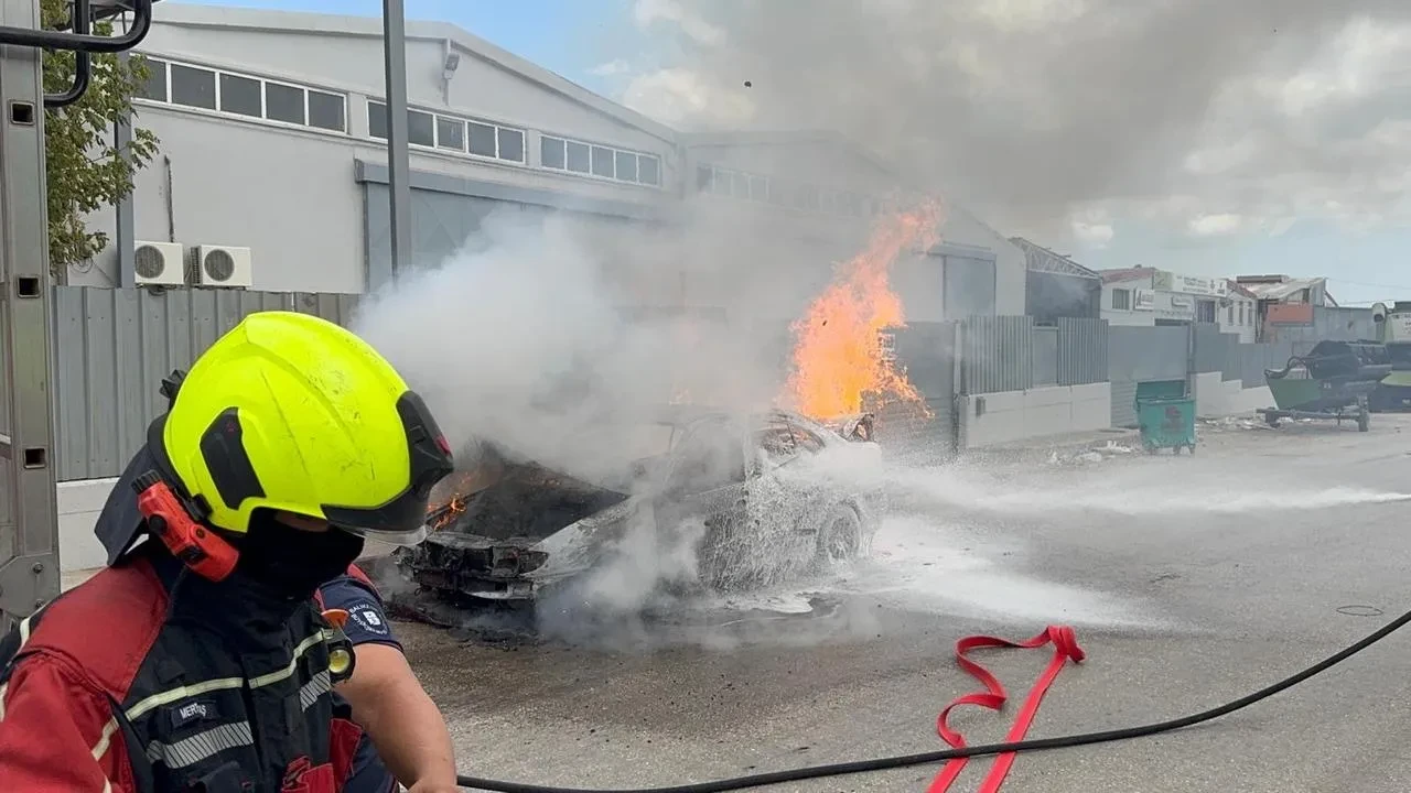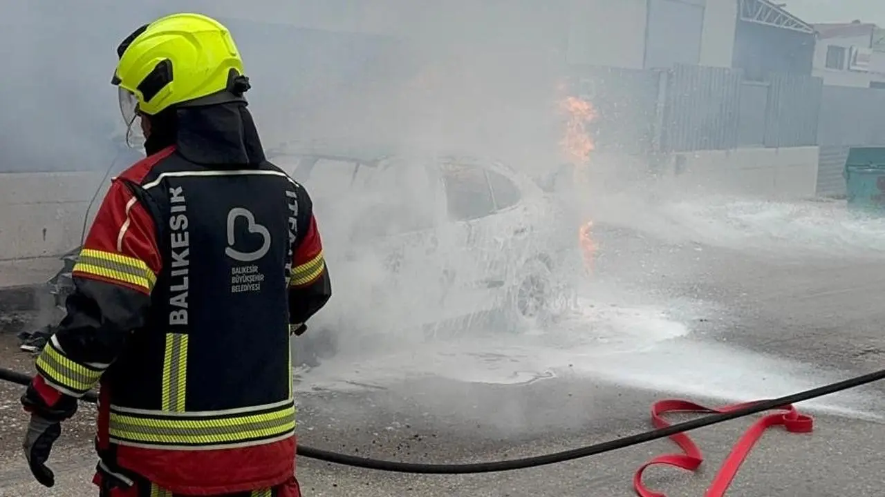 Balıkesir'in Bandırma ilçesindeki Sanayi Sitesi'nde bir araçta yangın çıktı, itfaiye ekipleri hızlı müdahale etti.