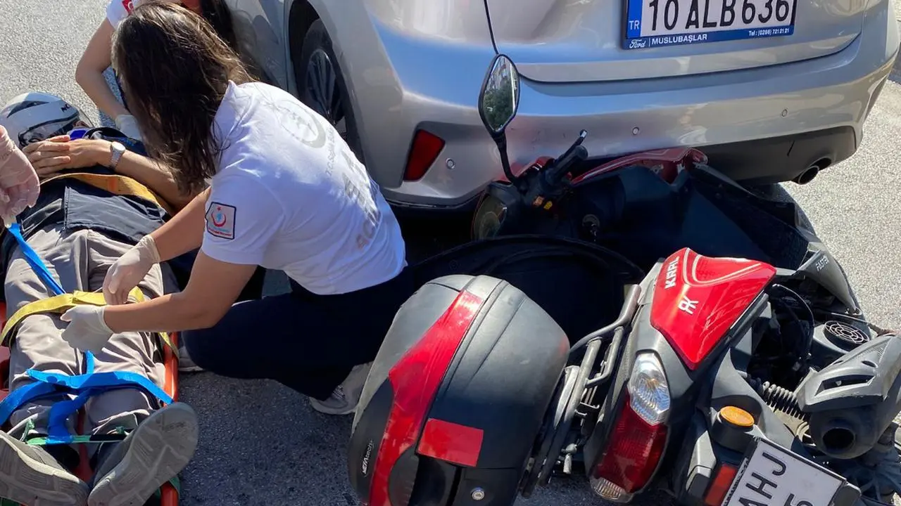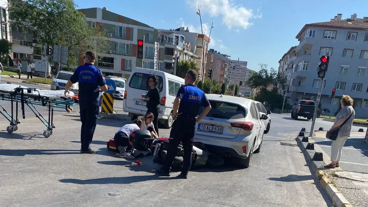 Balıkesir'in Bandırma ilçesinde kırmızı ışıkta bekleyen otomobile motosiklet çarpması sonucu bir kişi yaralandı.