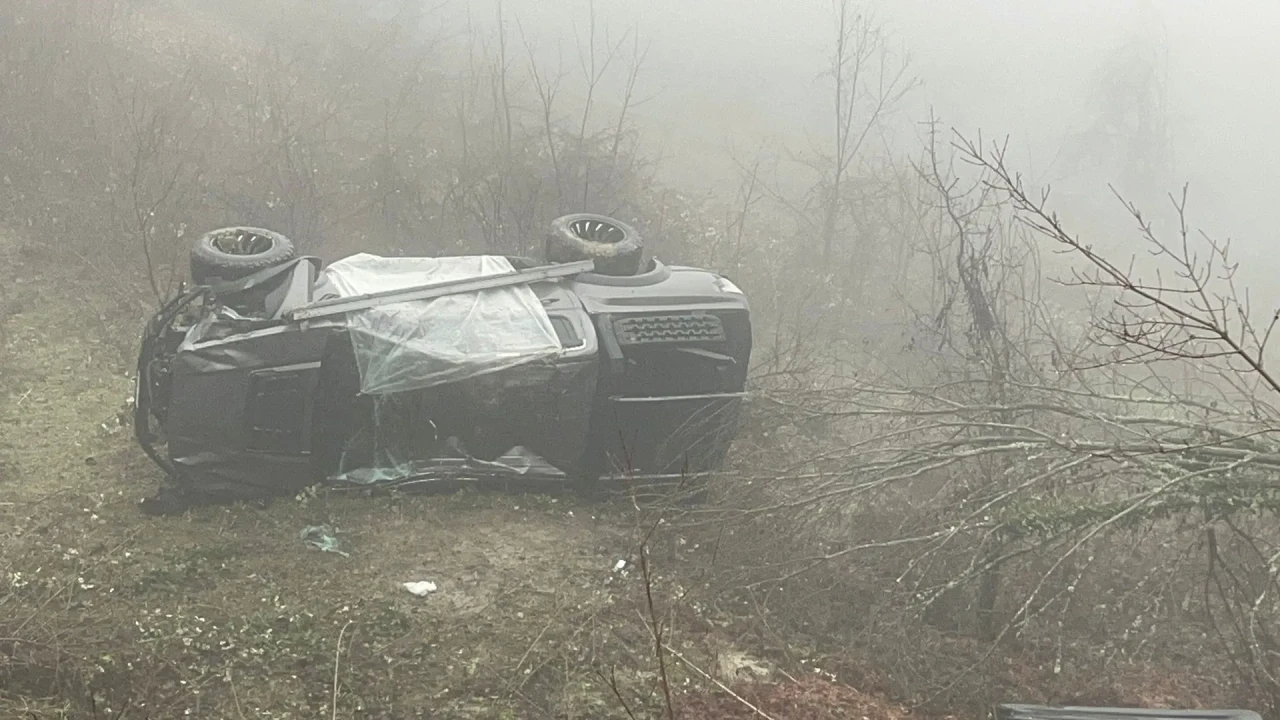 Bartın Ulus'ta yoğun sis nedeniyle yoldan çıkan araç takla atarak ormanlık alana düştü, kazada 4 kişi yaralandı.