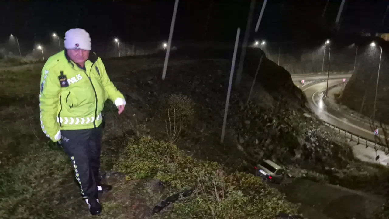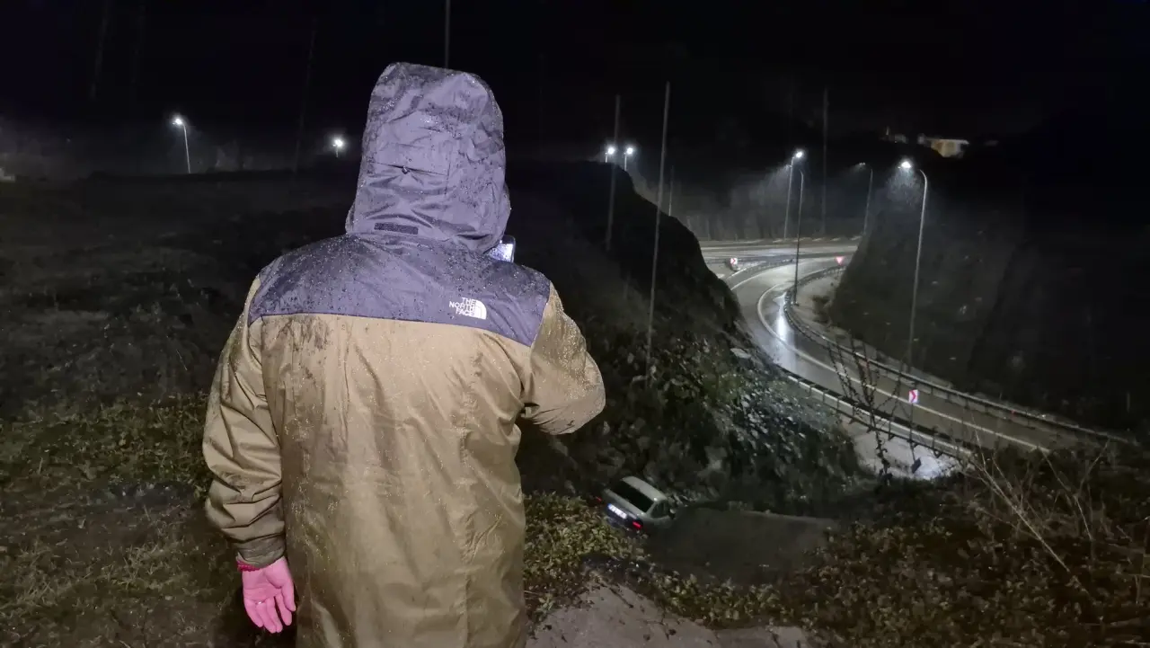 Bartın'da yağış nedeniyle kontrolden çıkan araç viyadükten uçarak 20 metre yükseklikten kayalıklara düştü.